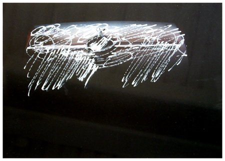 MARIO SCHIFANO Homs (Libia) 1934 – Roma 1998 Senza titolo Pittura su foto 11,2 x 16,2. Firma sul verso + timbro e firma galleria Mazzoli, Modena.
