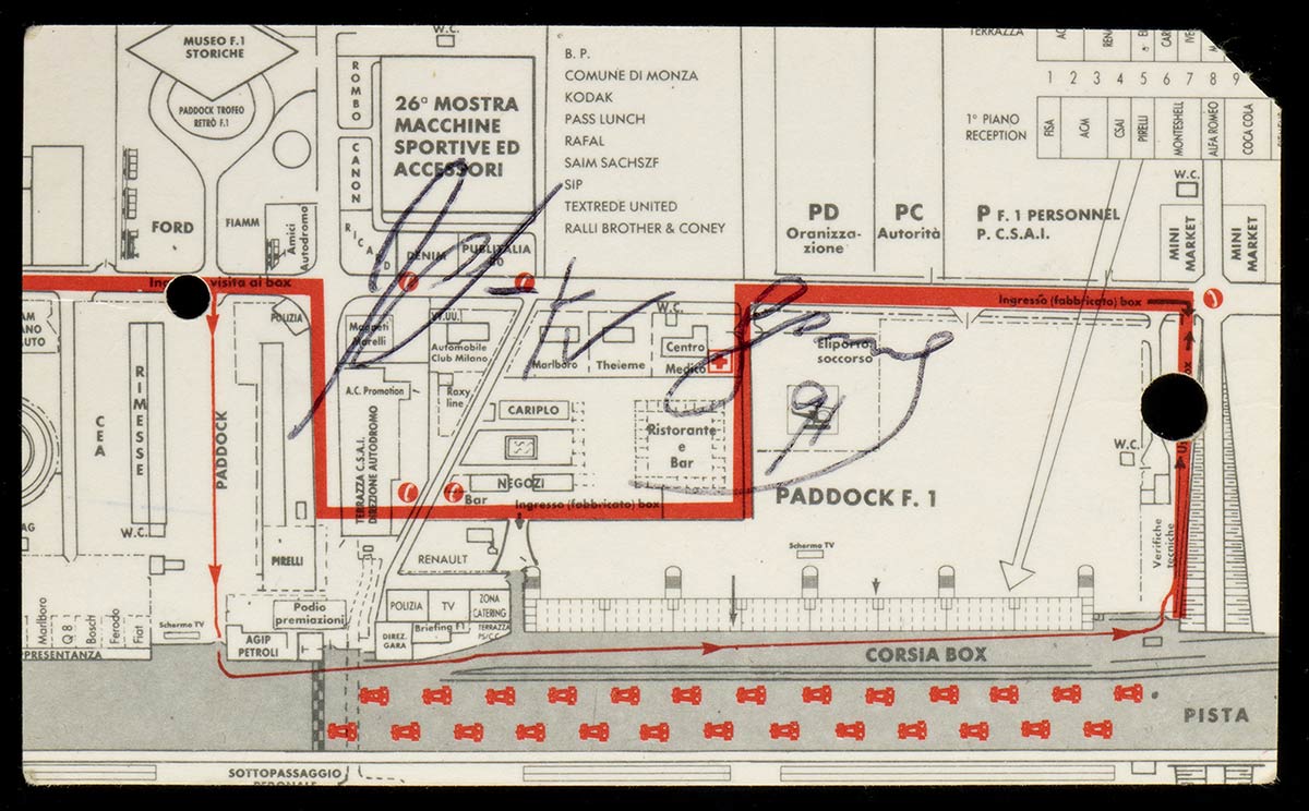 SENNA, Ayrton (San Paolo, 21 marzo 1960 – Bologna, 1 maggio 1994) : Biglietto 62' GP MONZA autografato Ayrton SENNA