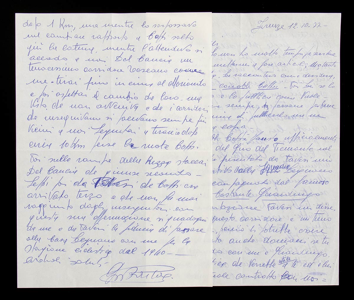 Lotto 142 | BARTALI, Gino (Ponte a Ema, 18 luglio 1914 – Firenze, 5 maggio 2000): Lettera autografa
