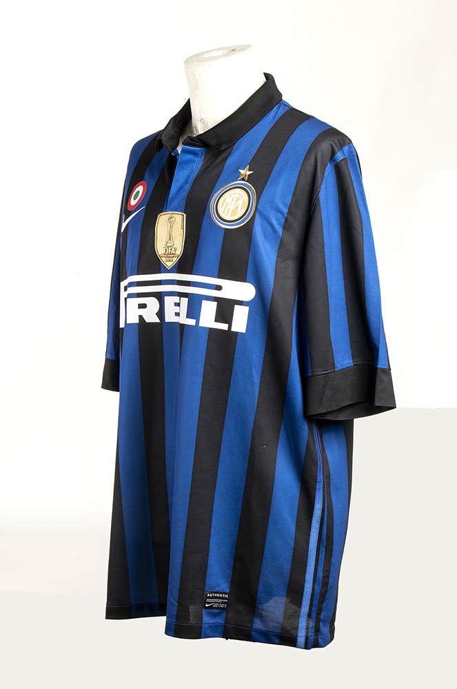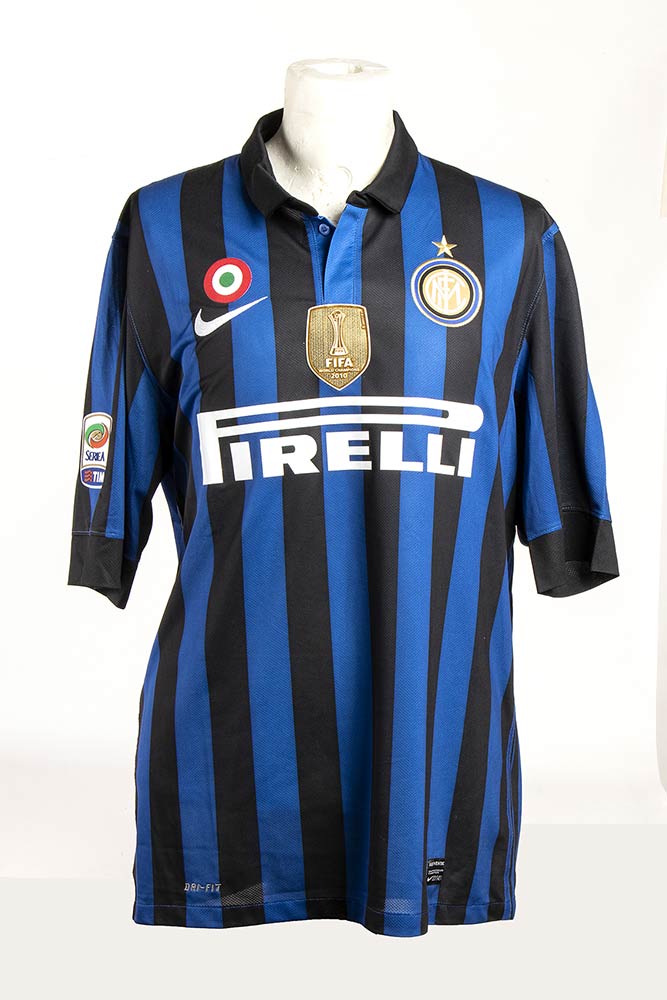 Maglia di gara Nike, taglia L, a maniche corte. (Probabilmente) preparata, appartenuta a Javier Zanetti, autografata dallo stesso Zanetti sul numero di gioco 4. Sulla manica destra patch in materiale plastico del logo SERIE A TIM. Al petto patch FIFA WORLD CHAMPIONS 2010, coccarda Coppa Italia tricolore a destra, e stemma IFCM con stella (dieci scudetti) a sinistra. Al retro nome J.ZANETTI e numero 4 applicati. Sponsor PIRELLI. DRI-FIT, targhetta di prodotto autentico Nike cucita. In perfette condizioni