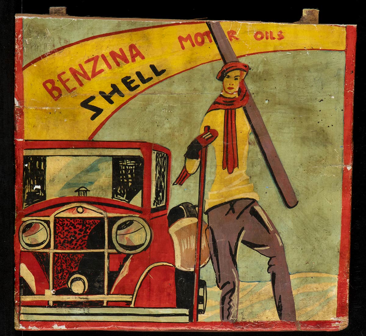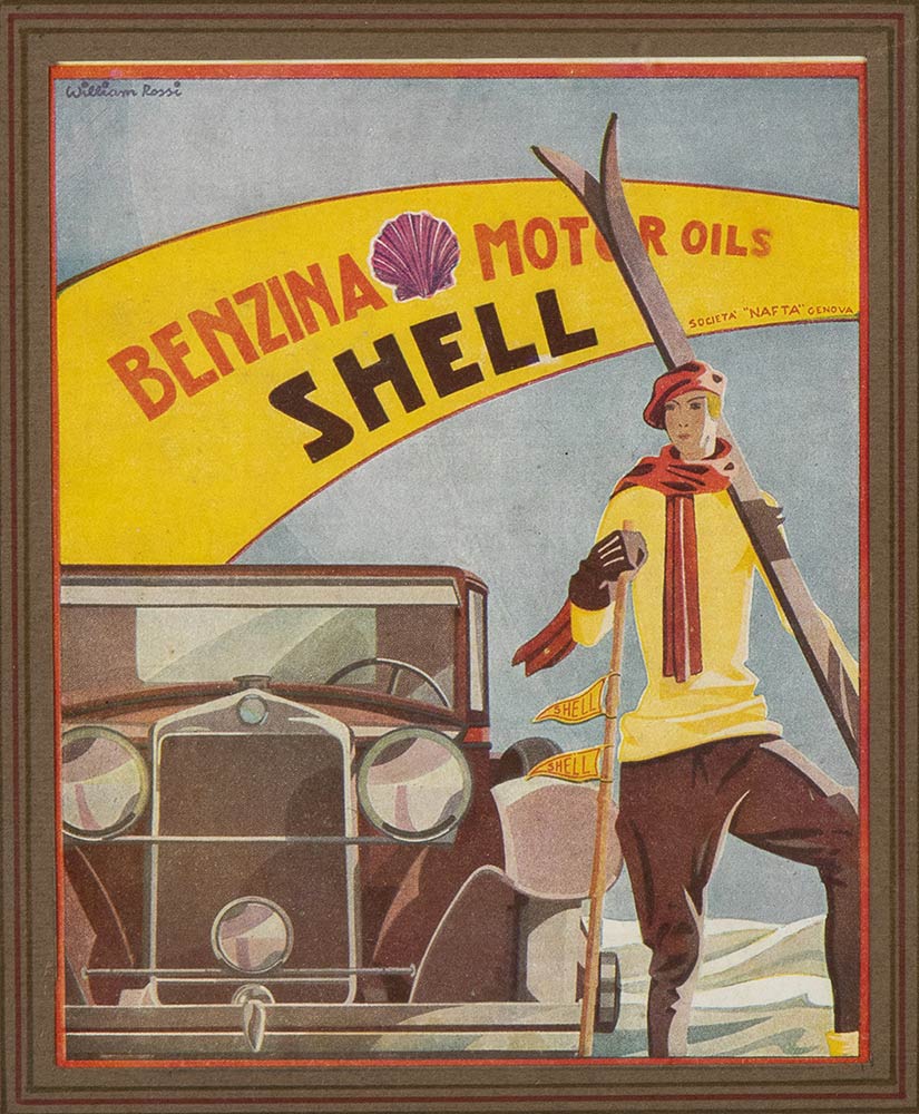 Lotto composto da un simpatico dipinto pubblicitario su tavoletta di legno, della BENZINA MOTOR OILS SHELL, con relativa stampa pubblicitaria da rivista d'epoca originale di William Rossi.. Misure cm.21x20, 25x30. Condizioni B-, B