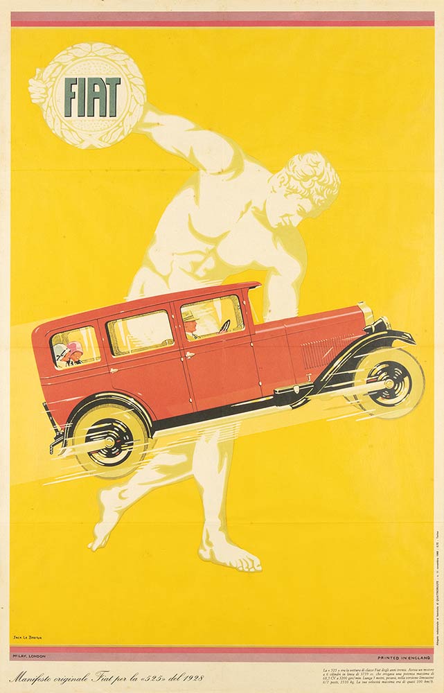 Ristampa del manifesto FIAT 525 disegnato da Jack Le Breton nel 1928. Supplemento alla rivista Quattroruote del 1969. Misure cm.53x80, condizioni A-