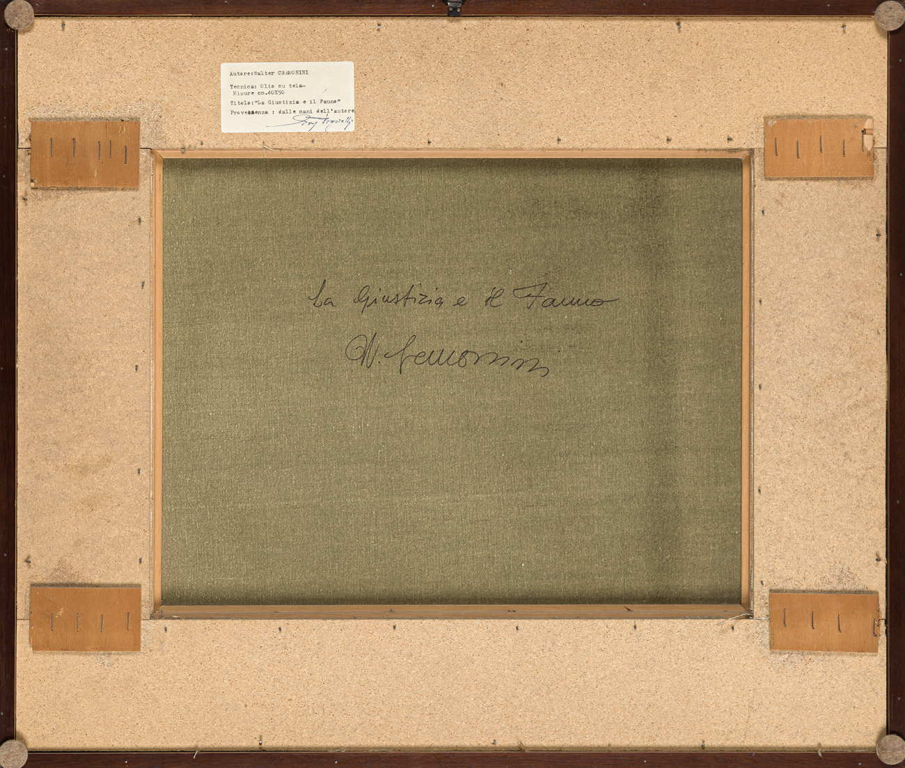 Etichetta per autenticità e provenienza a cura di Ery Vigorelli al retro della tavola protettiva