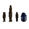 Amuleto che raffigura una divinità maschile, forse Amon, stante con gamba sinistra avanzata. Reca un pilastrino dorsale con foro passante all'altezza della testa, doppia piuma sul capo; amuleto che raffigura il dio Anubi, stante con gamba sinistra avanzata. Reca un pilastrino dorsale con foro passante all'altezza delle spalle, gonnellino-shendyt e braccia lungo il corpo; amuleto che raffigura una divinita` maschile non identificabile, con testa di ippopotamo, stante con gamba sinistra avanzata; scarabeo a piastrina anepigrafe lavorato solo su un lato, molto stilizzato; tra il clipeo e la testa e` inciso un occhio (4)
