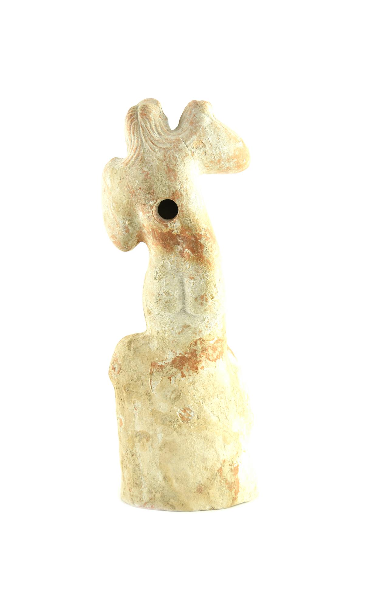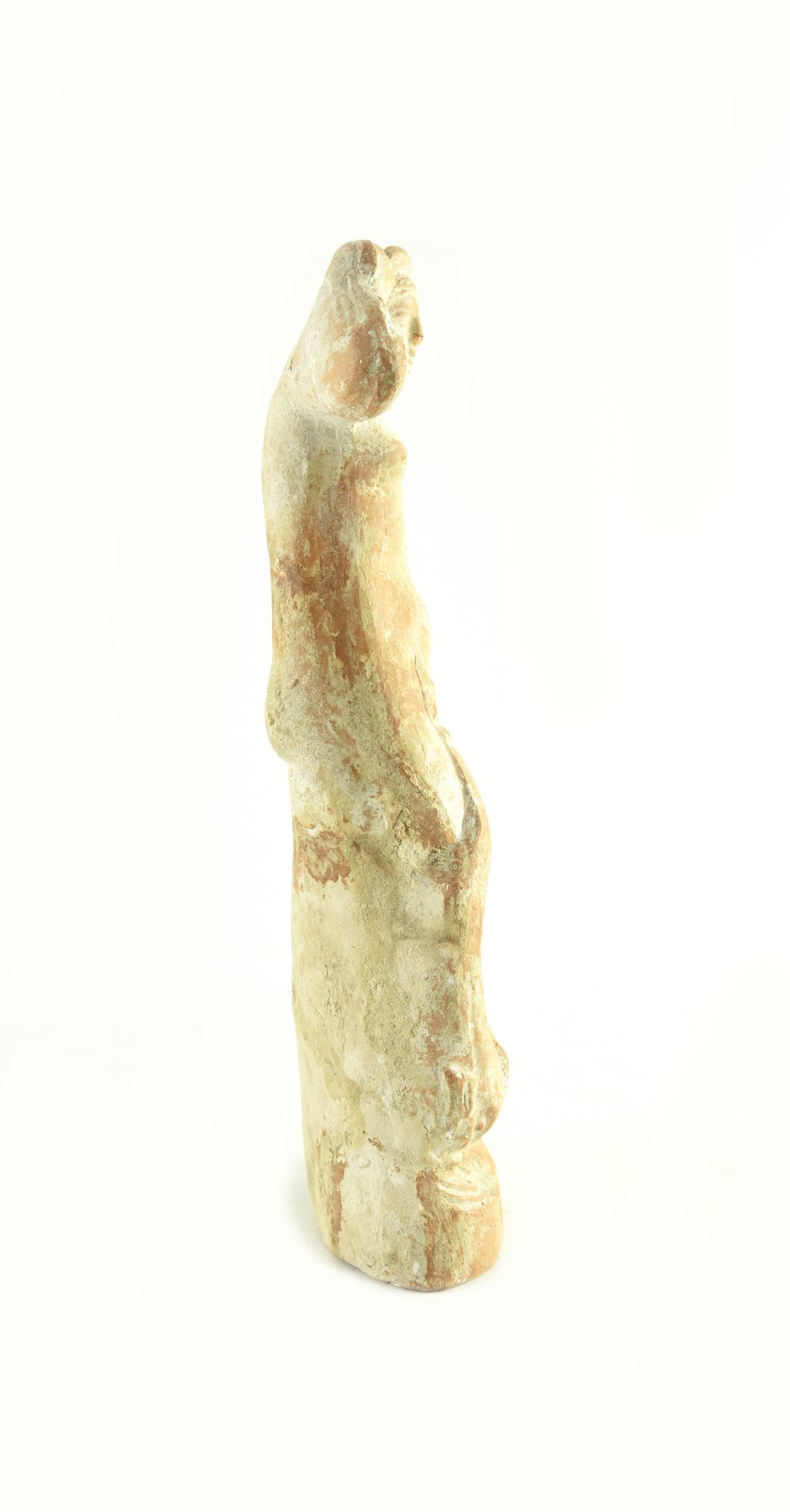 MATERIA E TECNICA: argilla figulina rosata, ingubbiatura camoscio, modellata a stampo con ritocchi a stecca, interno cavo, foro di sfiato posteriore