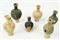 Cinque unguentari fusiformi con bocchello a tesa, alto collo cilindrico, corpo ovoide, piede troconconico, un unguentario con bocchello ad echino rovescio, alto collo cilindrico, corpo ovoide, piede modanato, anse a nastro impostate orizzontalmente sulla spalla