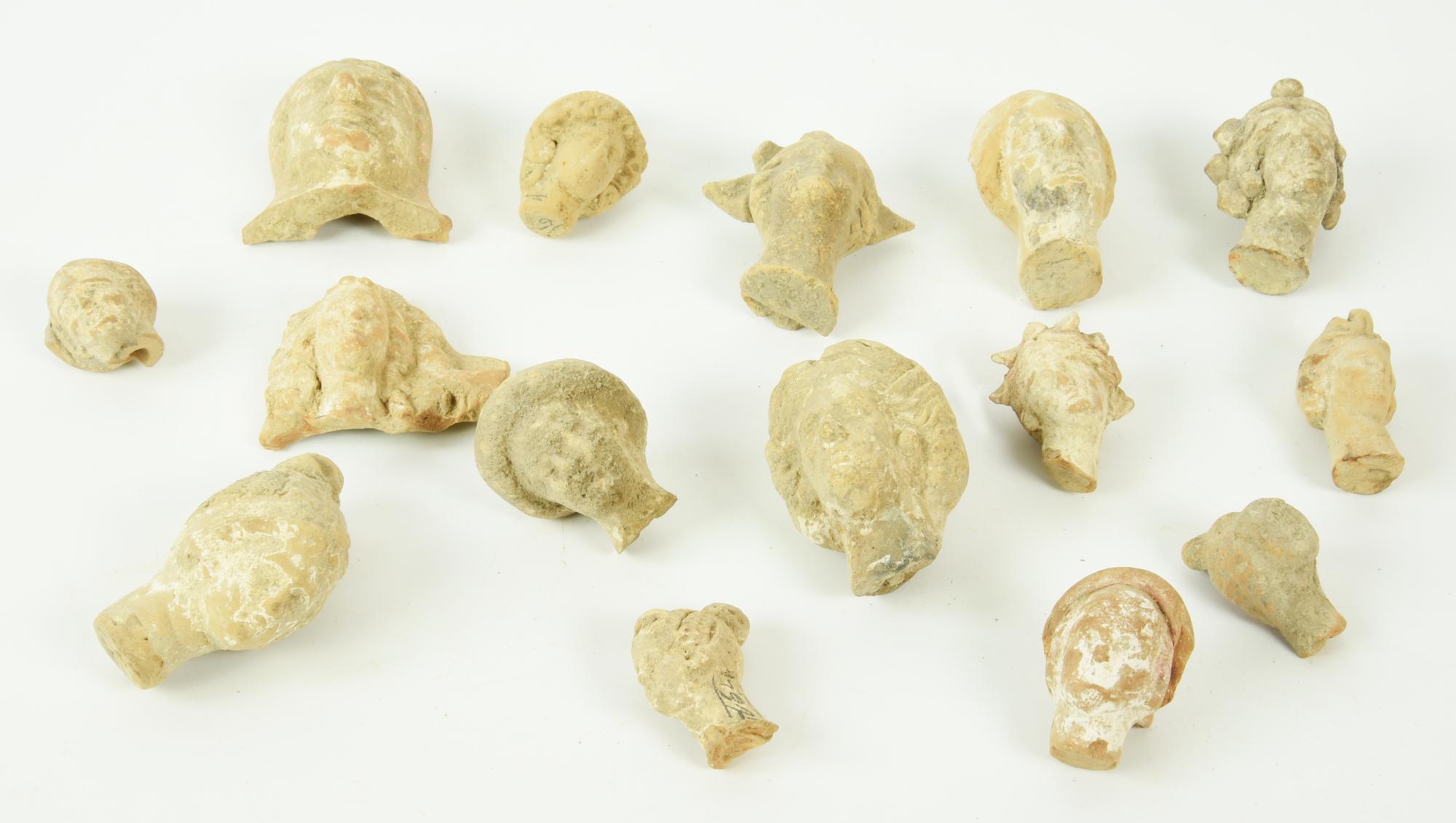 Quindici testine sia maschili che femminili, pertinenti a statuette votive