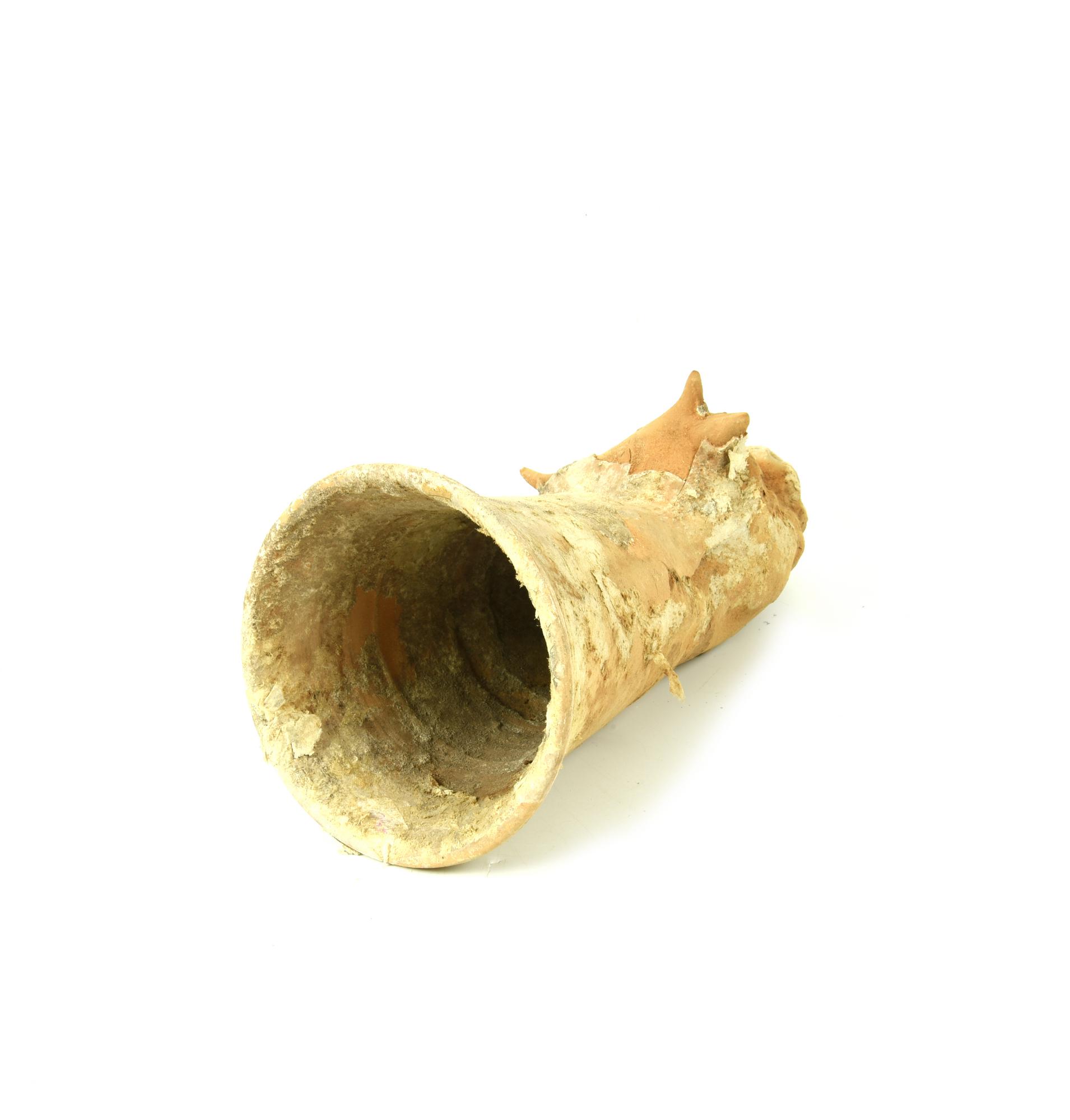 Rython con corpo cilindrico desinente in una testa di toro, realisticamente modellata con corna aguzze e orecchie erette