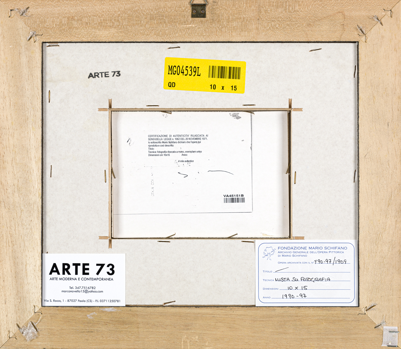Certificato di autenticità a cura dell'Archivio Generale dell'Opera Pittorica di Mario Schifano - Fondazione Mario Schifano