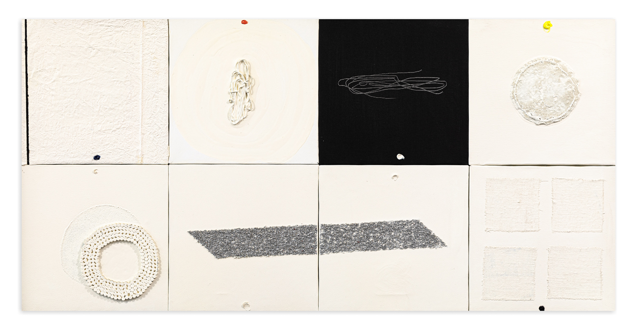 Tecnica mista, collage e applicazioni su 8 tele assemblate
