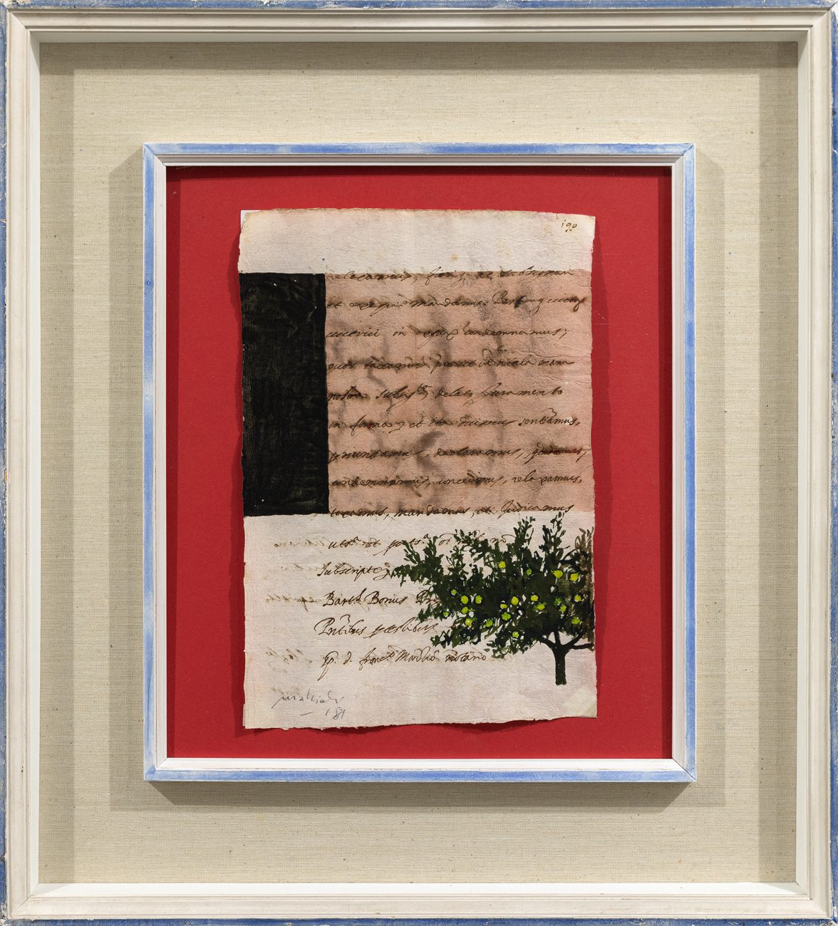 Tecnica mista su foglio manoscritto antico