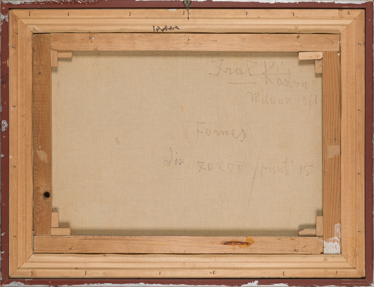 Firma, titolo, datazione, località (Milano) e misure al retro
