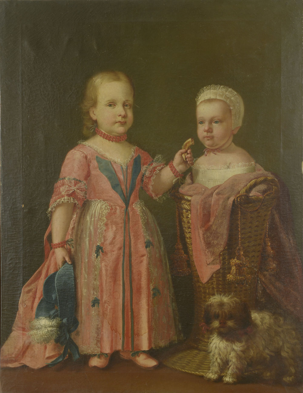 Lotto 50 | Scuola italiana del XVIII Ritratto di bimbi con cagnolino Olio su tela, in...