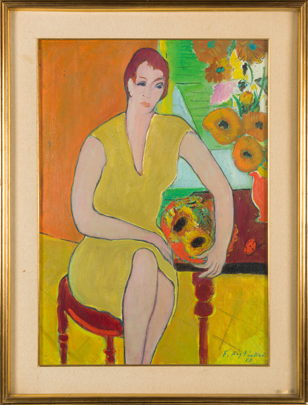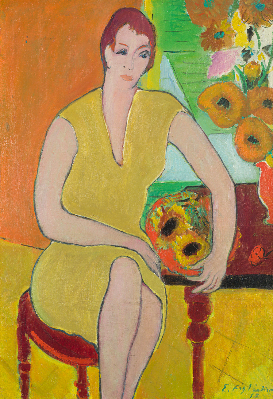 ERMANNO FIGLIOLINI (1909-?) - Signora in giallo, 1957