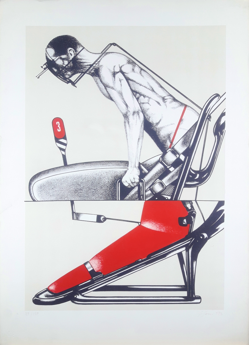 SARRI SERGIO Torino 1938 “Senza titolo” serigrafia su cartoncino cm 50x70 del 1973. Firmata e datata a matita sul fronte in basso a destra, tiratura 89/150 a sinistra.