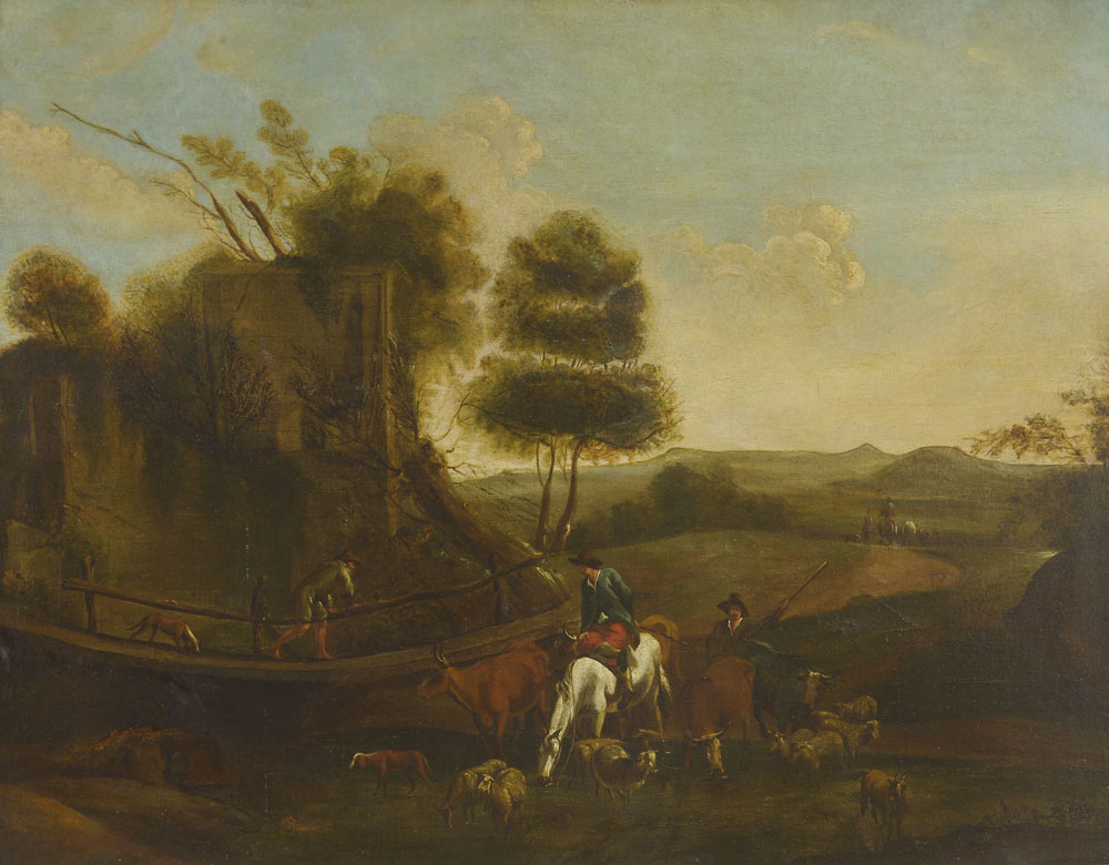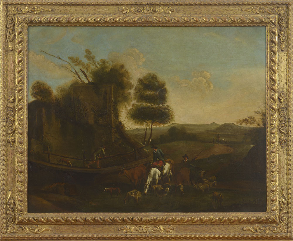 Scuola fiamminga del XVII secolo Paesaggio Olio su tela, in cornice...