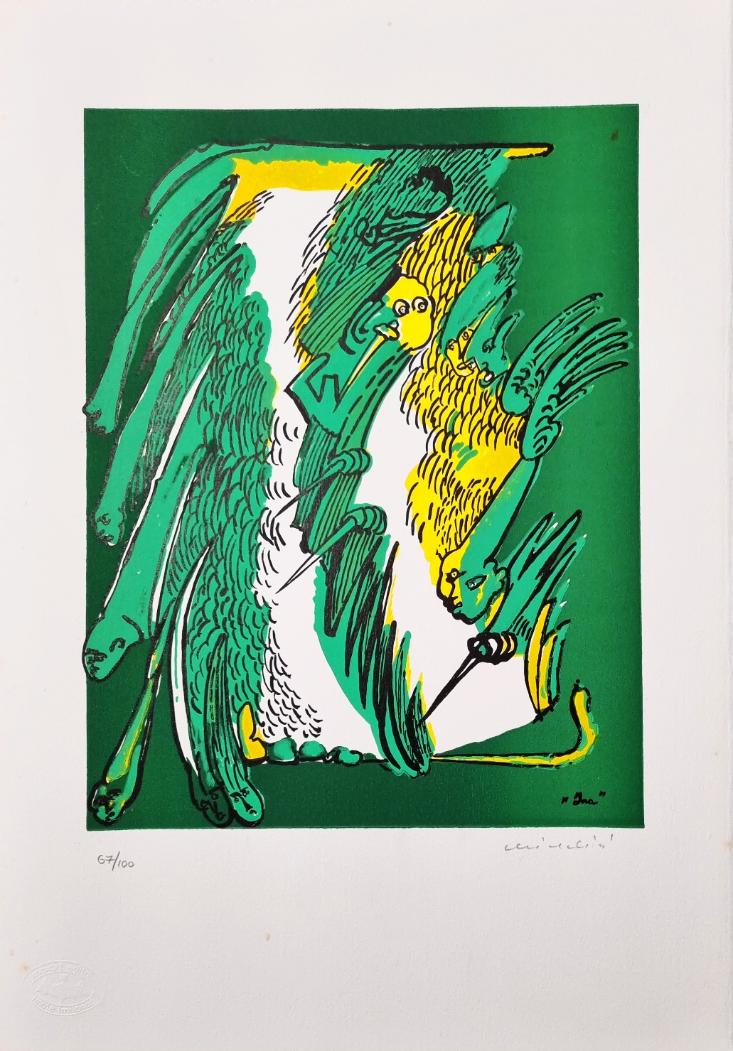 BRINDISI REMO Roma 1918-Lido di Spina 1996 “I sette vizi capitali” 7 xilografie originali cm 35x50 del 1981, impresse direttamente con bulini su legni di bosso e tirate su vecchio torchio a mano ultra secolare. Tiratura 67/100, firmata e numerata di pugno dall’artista.