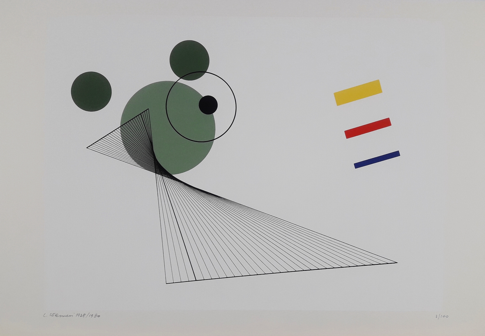 VERONESI LUIGI Milano 1908-1998 “Composizione L3” serigrafia su cartoncino cm 33x48. Firmata e datata 1938/1980 in basso a sinistra, tiratura 3/100 in basso a destra.