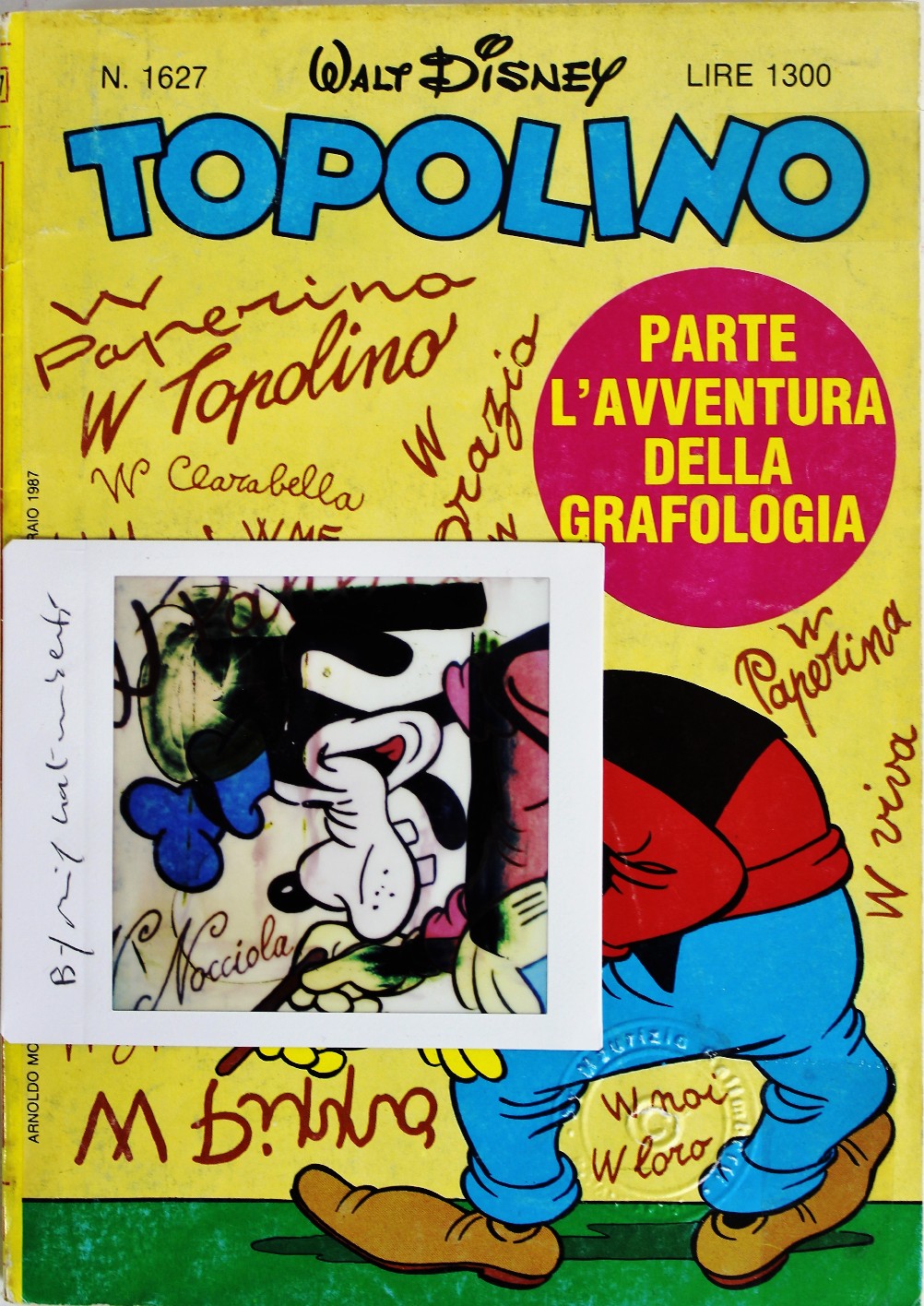 GALIMBERTI MAURIZIO Como 1956 “Topolino n°1627” Readymade-Fuji ibstax applicata su fumetto vintage cm 14x18 del 2018. Firmata sul lato sinistro al centro. Autentica su foto, archivio a cura della Nordest.