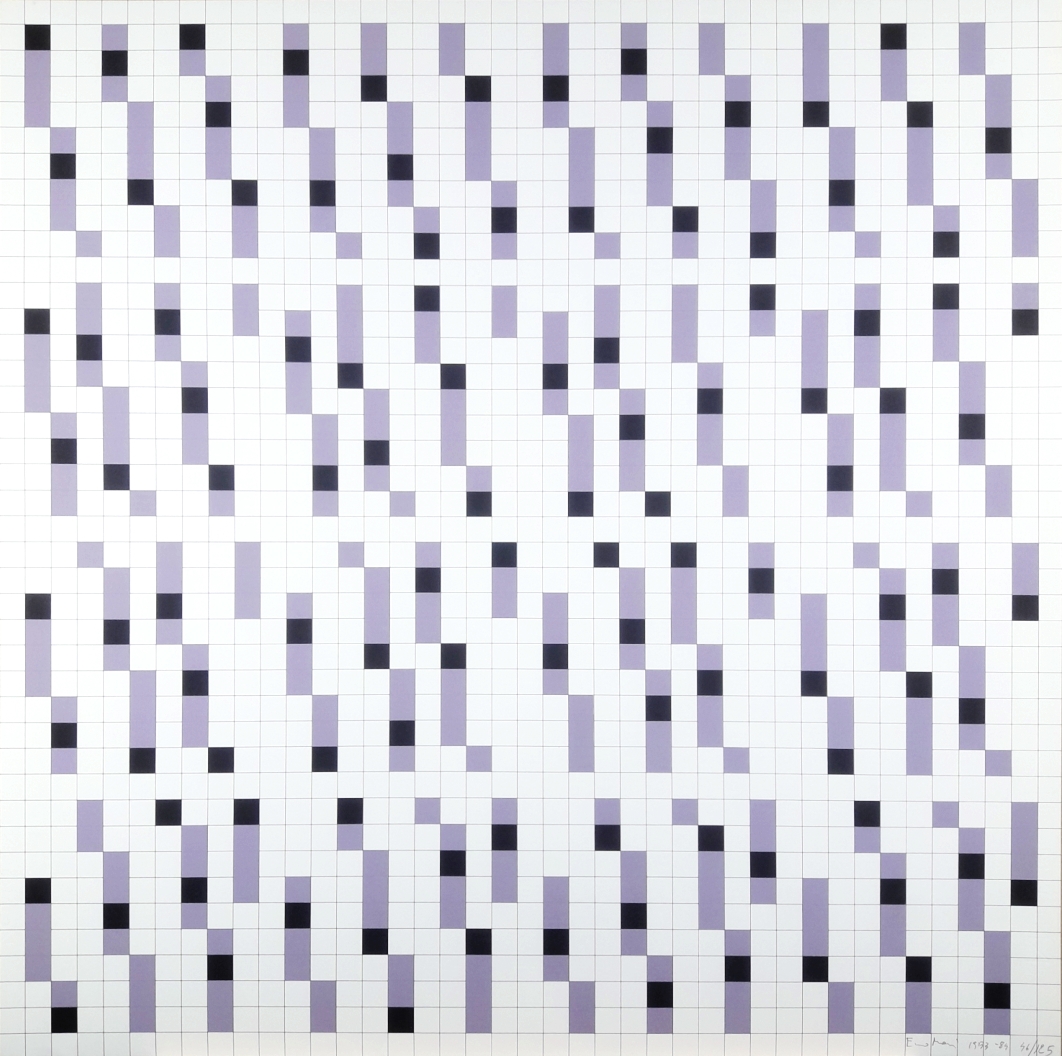 MARI ENZO Novara 1932-Milano 2020 “Variation on theme” serigrafia su cartone Fabriano cm 68x68 del 1933/84. Firma, data tiratura 46/125 a matita sul fronte in basso a destra. Facente parte della Cartella “Exacta- dal costruttivismo all’arte sistematica 1918-1885” edita da Squatriti.