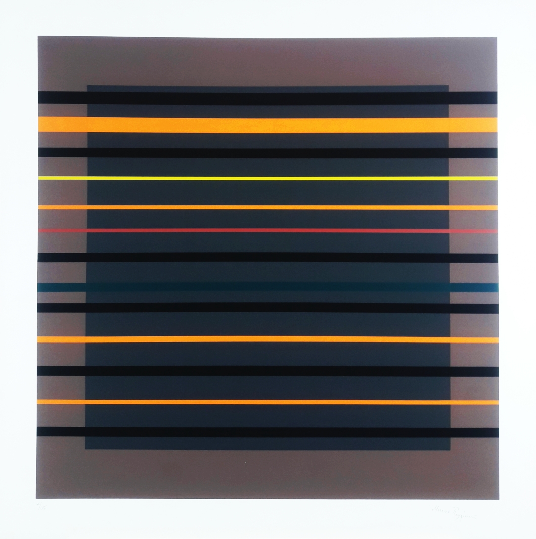 REGGIANI MAURO Nonantola 1897-Milano 1980 “Senza titolo” serigrafia su cartone Fabriano cm 68x68. Firmata a matita sul fronte in basso a destra, tiratura 46/125 a sinistra. Facente parte della Cartella “Exacta- dal costruttivismo all’arte sistematica 1918-1885” edita da Squatriti.