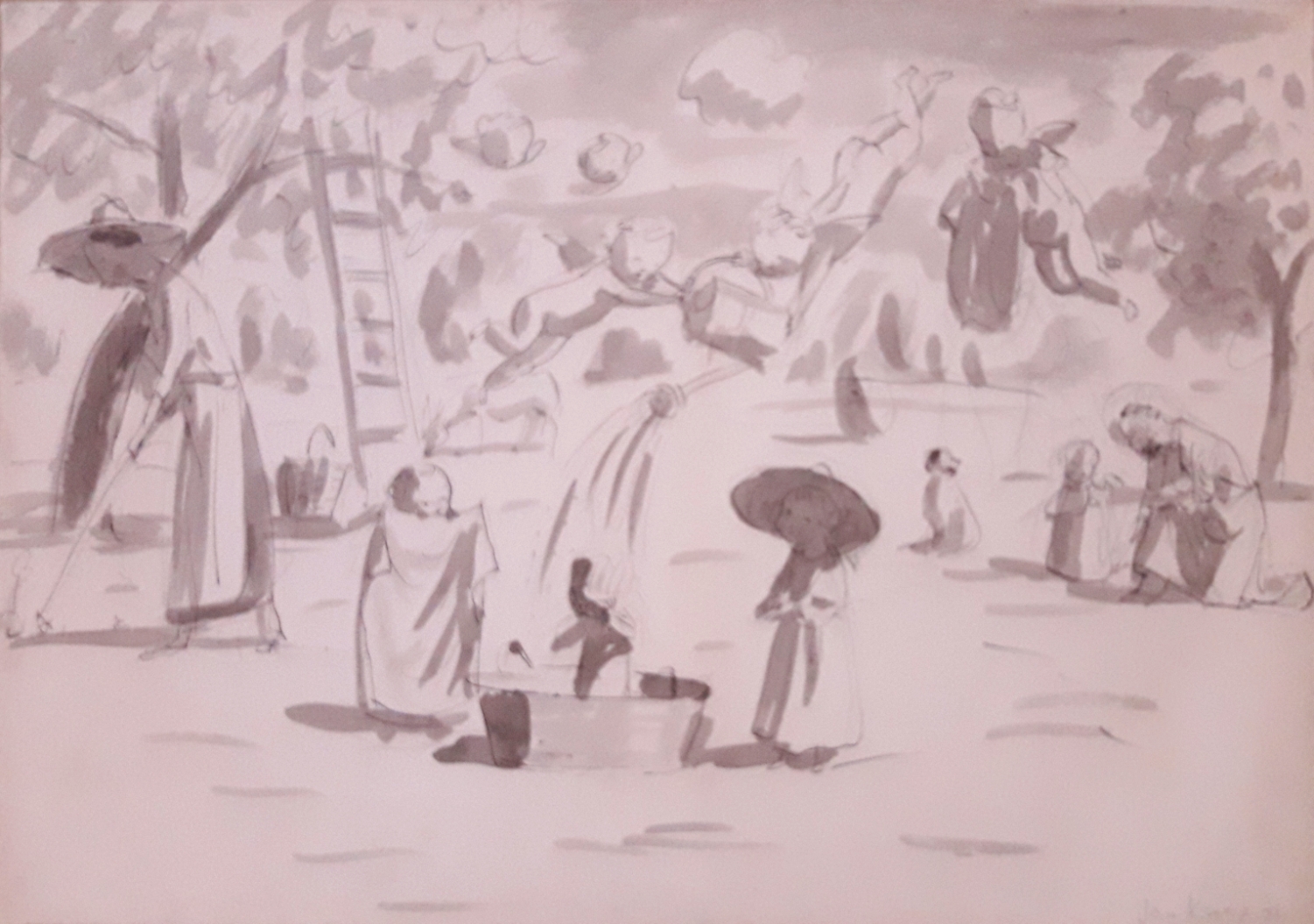 KNAP JAN Repubblica Cieca 1949 “Senza titolo” acquerello su carta intelata cm 41,5x58,5 del 2002. Firmato sul fronte in basso a destra. Sul retro etichetta della Galleria Franco Cancelliere. Autentica su foto a cura dell’artista.