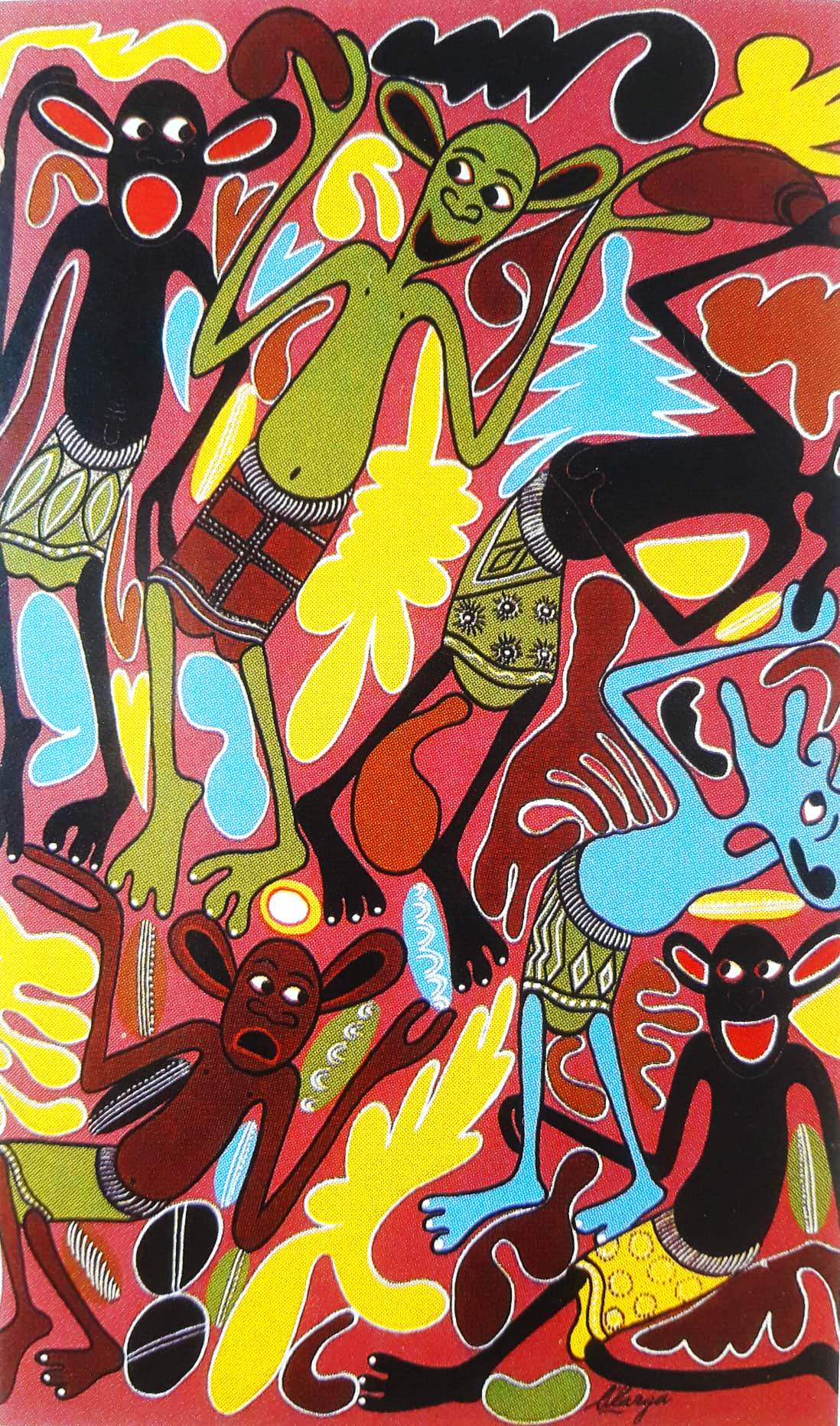 LILANGA GEORGE Kikwetu 1934 Dar es Salaam 2005 “Senza titolo” acrilico su tavola cm 100x70 del 1998. Provenienza collezione AP. Opera pubblicata a pag. 106 del catalogo ragionato “Lilanga George” Volume I.