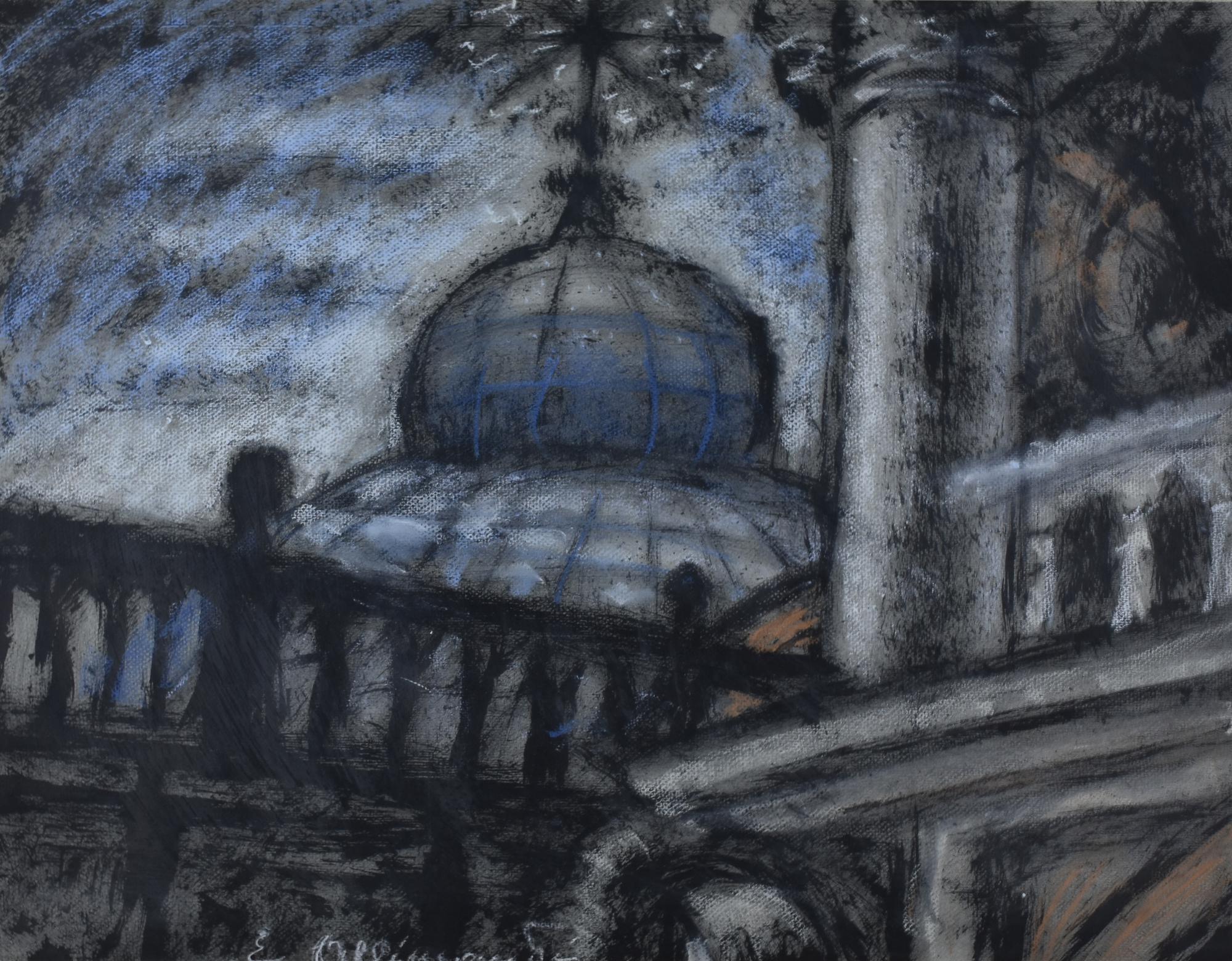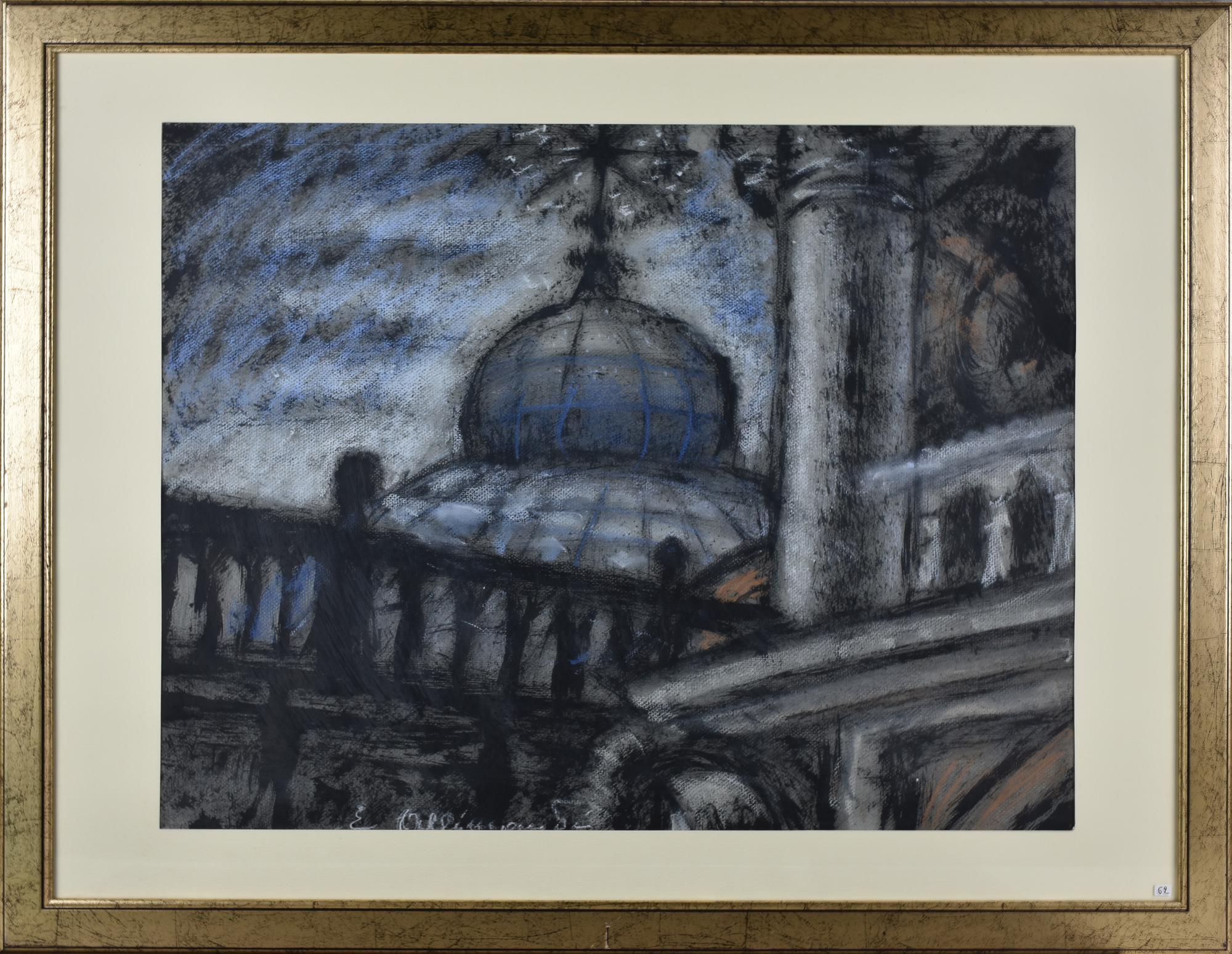 Enrico Allimandi UNA CUPOLA A VENEZIA tecnica mista su carta, cm 50x65 firma...