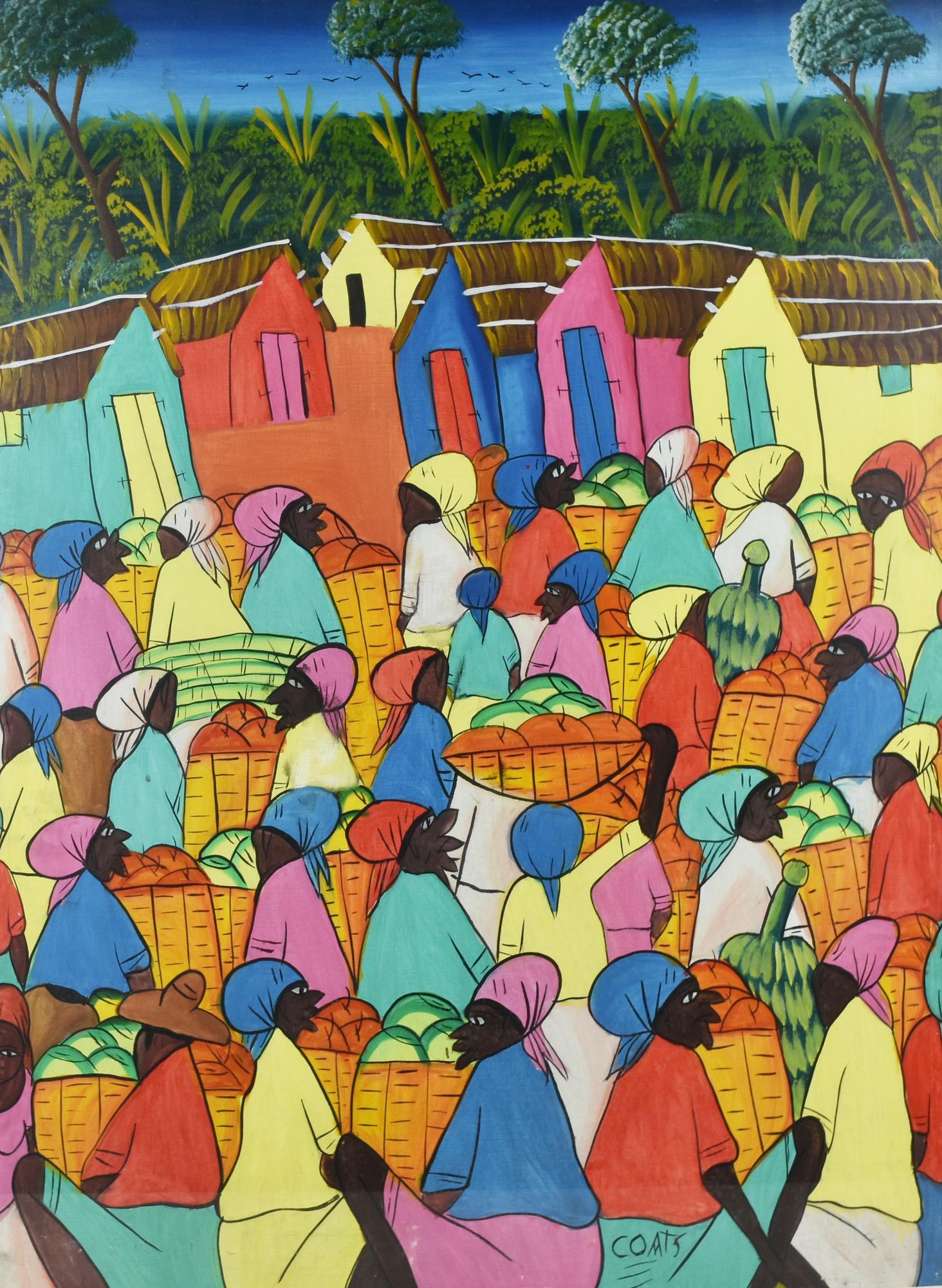 Coats MERCATO AFRICANO tempera su cartoncino, cm 100x75 firma IL PRESENTE...