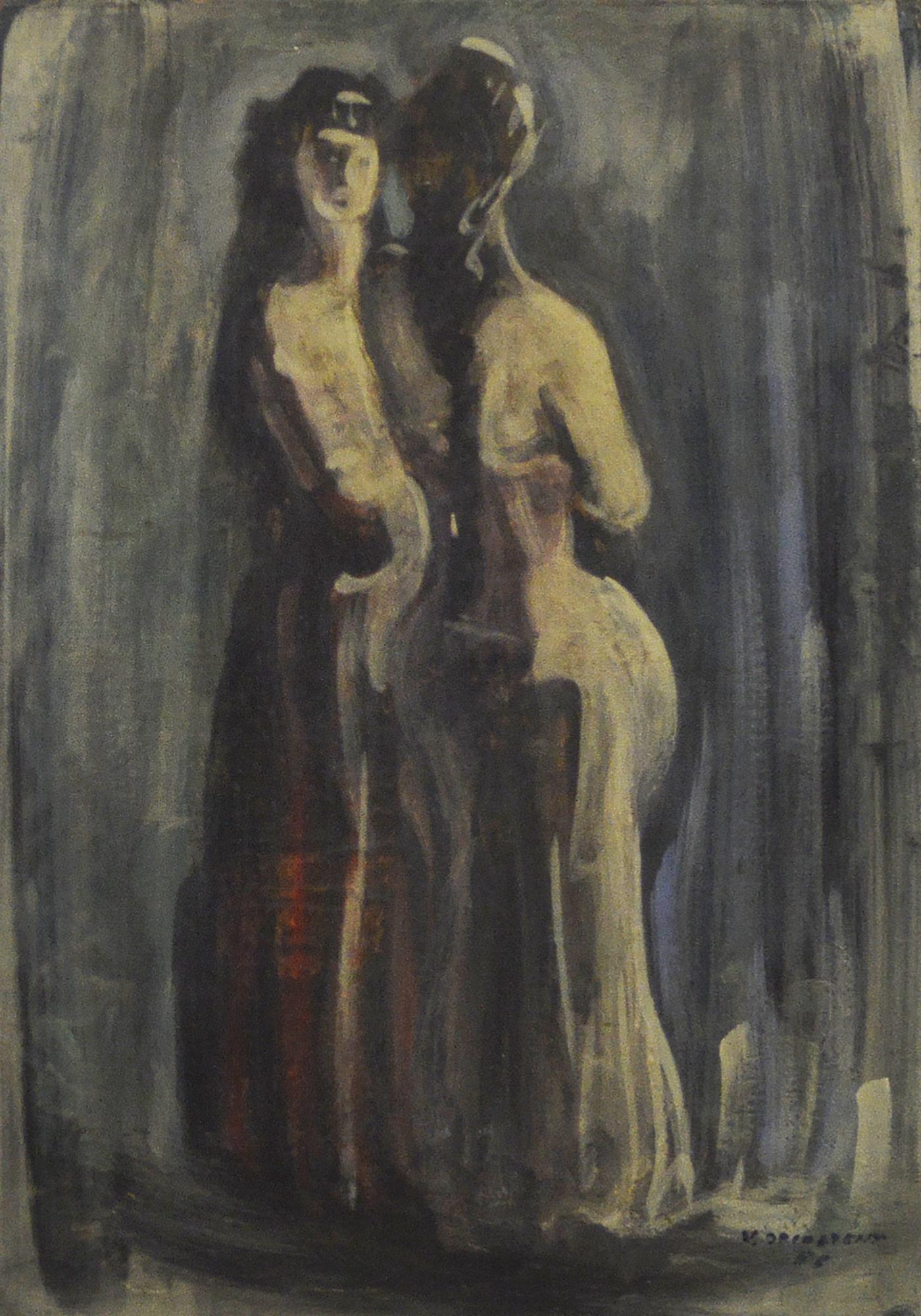 Ignoto FIGURE olio su faesite, cm 44x32 indistintamente firmato e datato...
