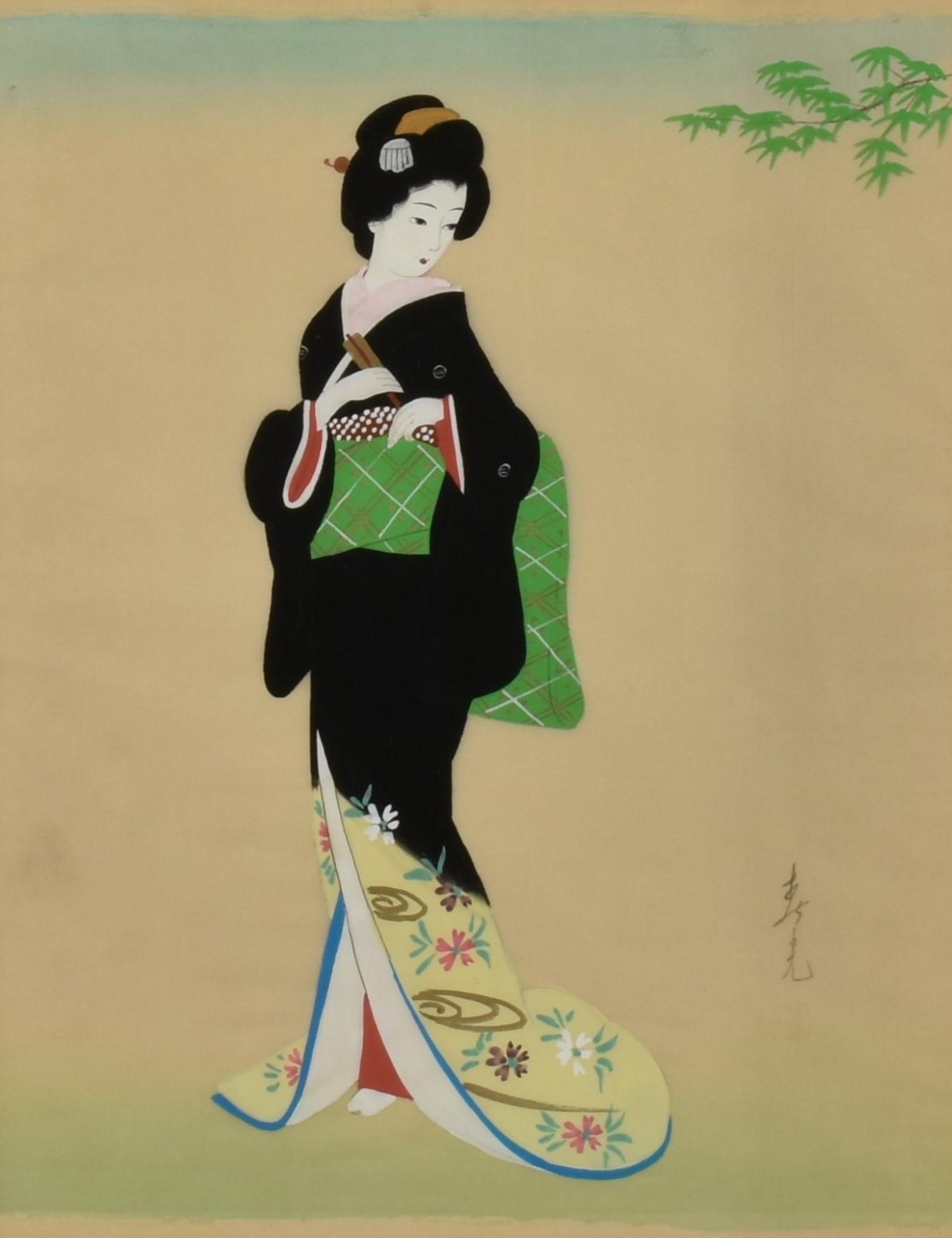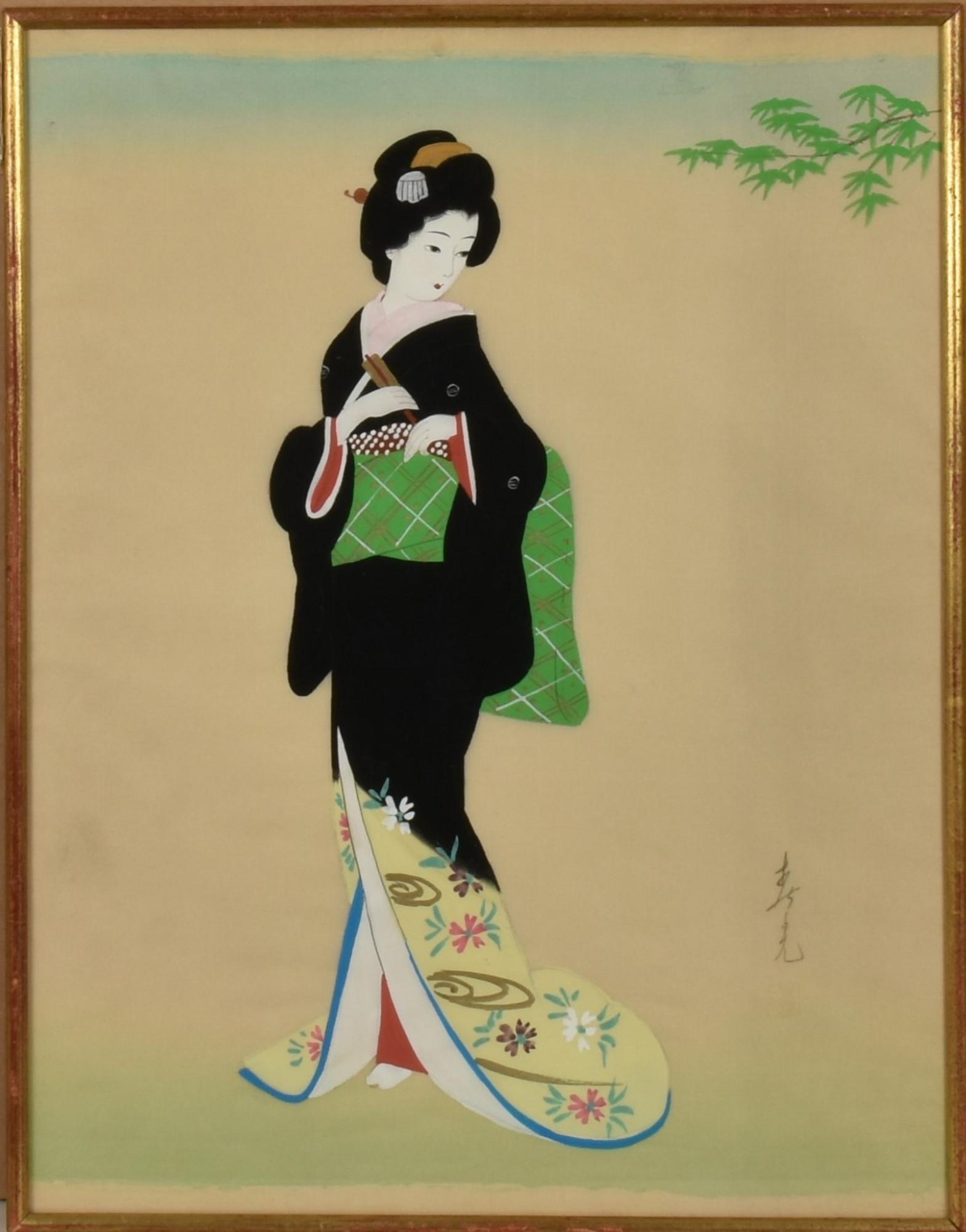 Scuola giapponese del XX secolo GEISHA tempera su seta, cm 44,5x34,5 firmato