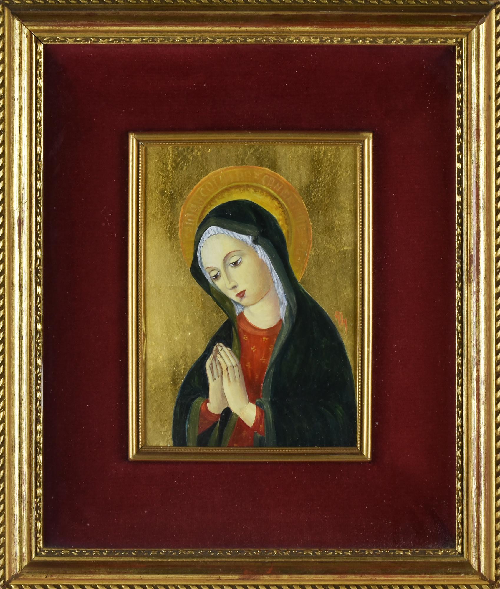 Aly MADONNA tempera su fondo oro su cartone, cm 19x14 firma