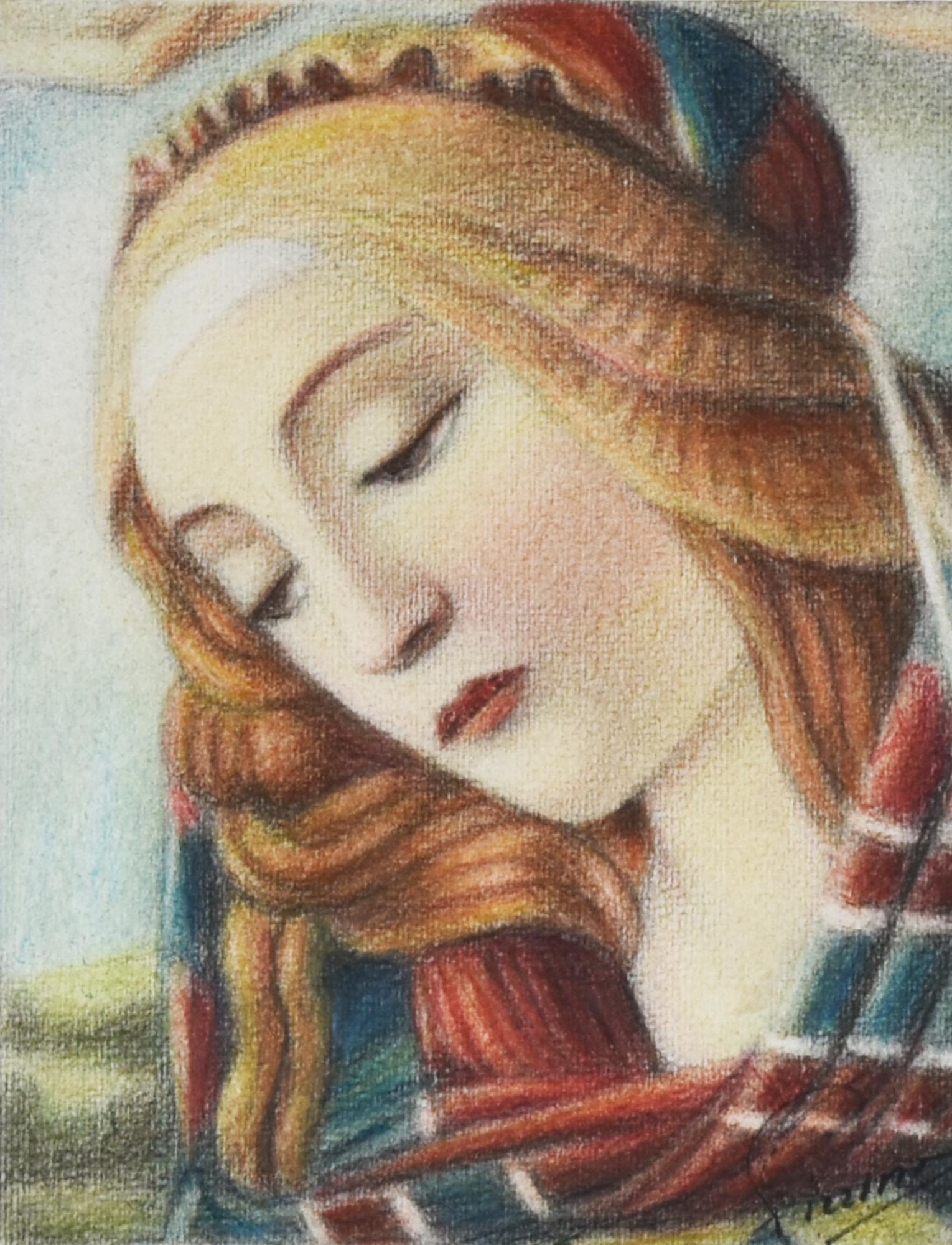 Ignoto LA DAMA pastelli su carta, cm 20x15 firma