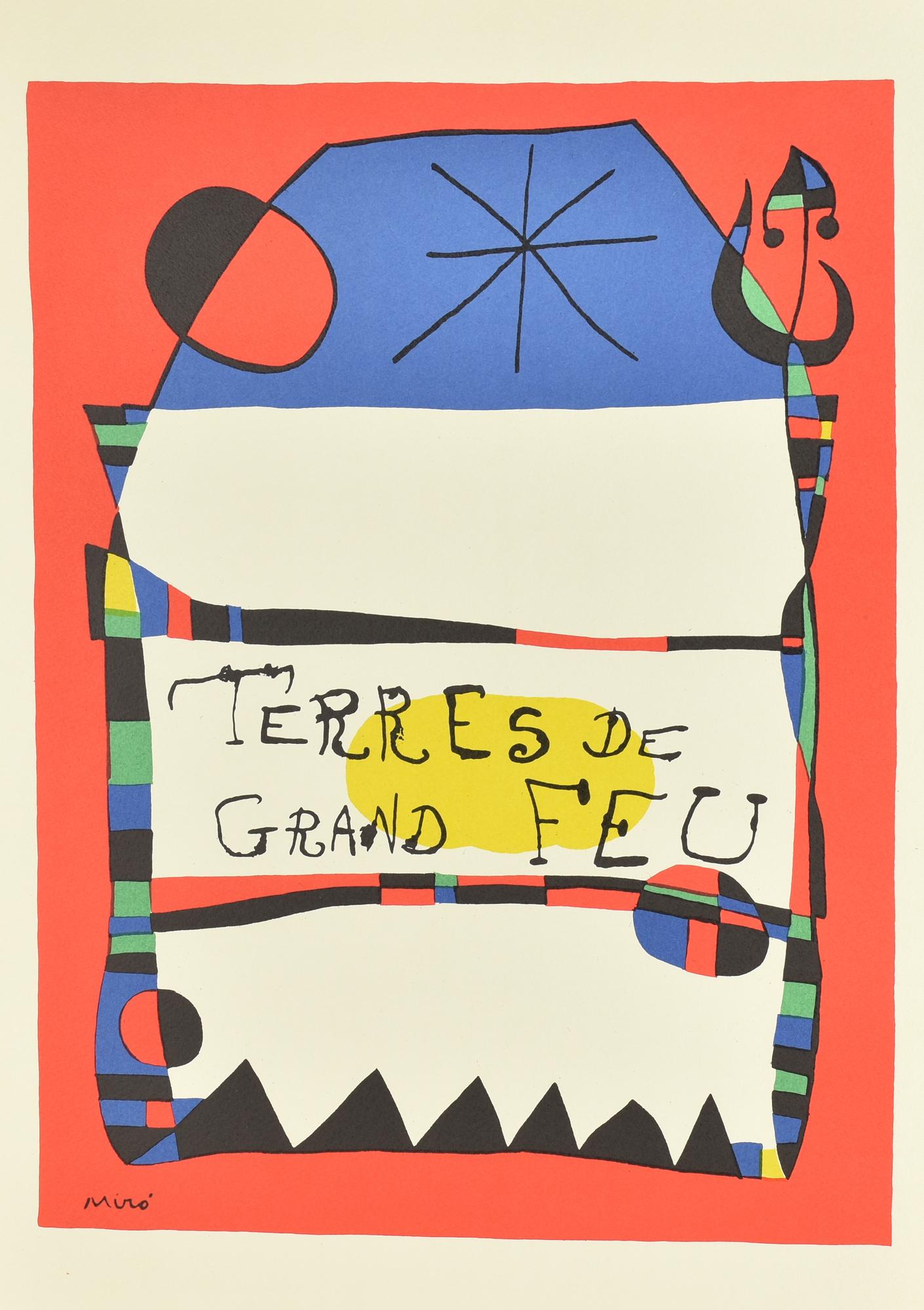 Joan Miro' TERRES DE GRAND FEU litografia su carta (d'apres), cm 48x33,5...