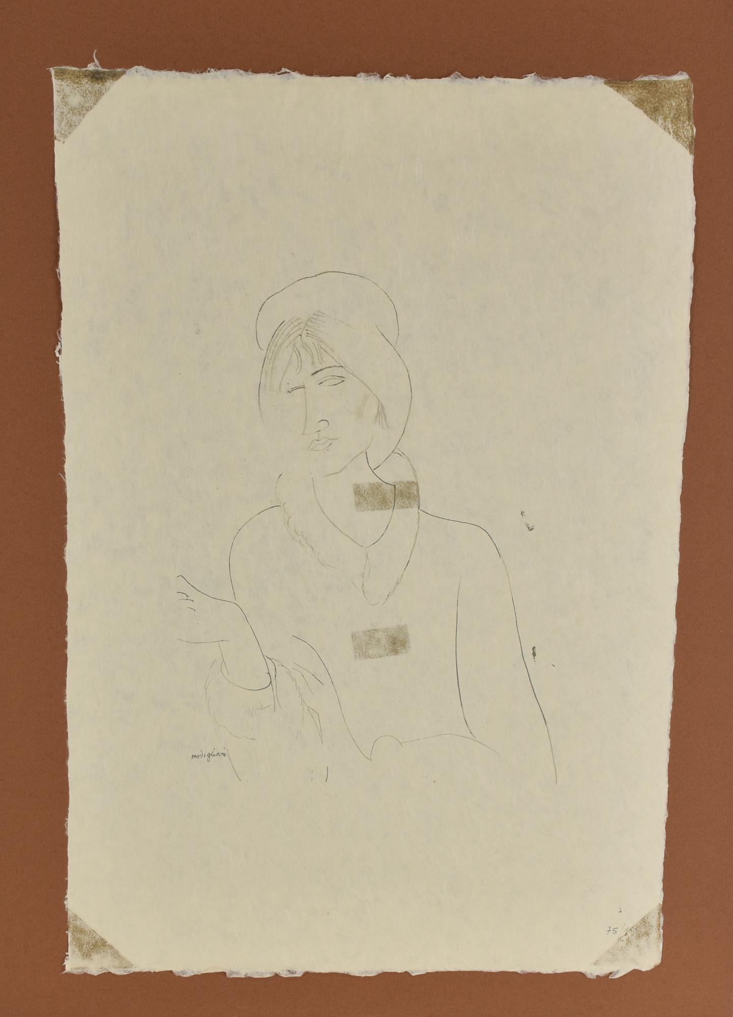 Amedeo Modigliani RITRATTO DI JEANNE HEBUTERNE litografia su carta di riso...