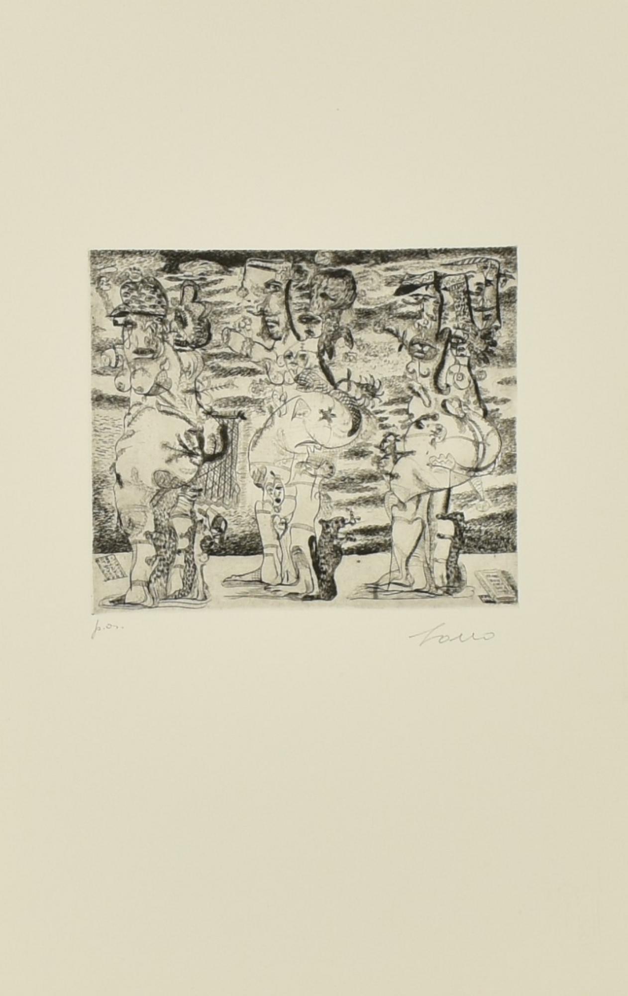 Tono Zancanaro SENZA TITOLO acquaforte, mm 175x210, su foglio cm 51x35; es. P.A.