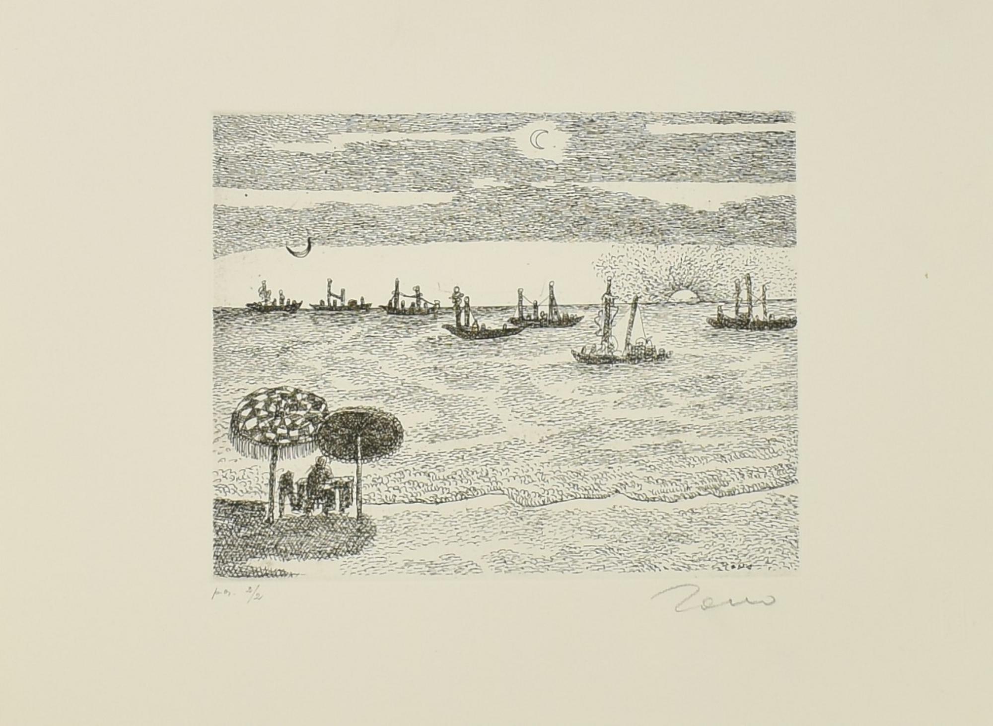 Tono Zancanaro SENZA TITOLO acquaforte, mm 220x278, su foglio cm 35x50; es....