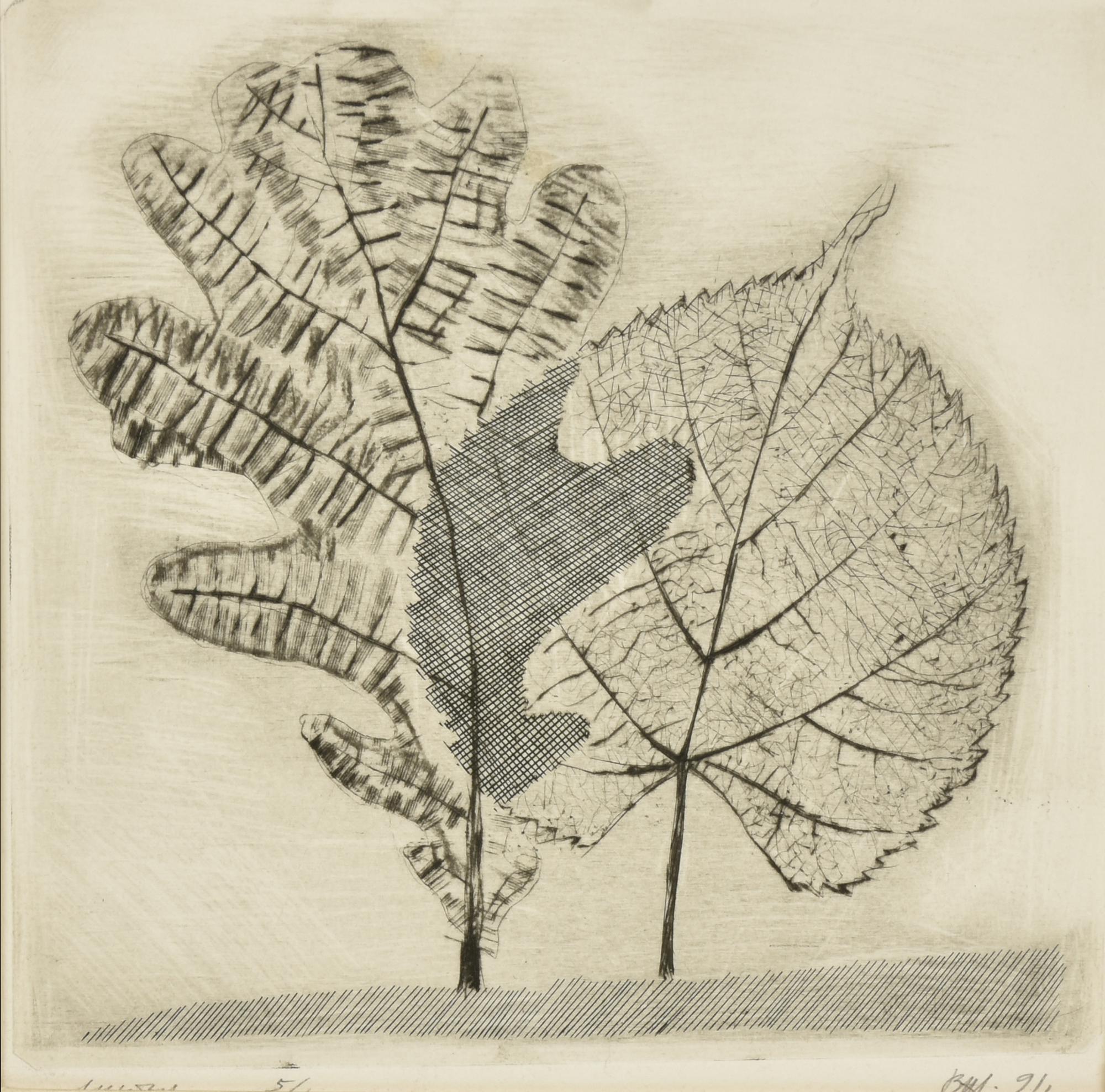 Vladimir Shukou LEAVES incisione su carta, battuta cm 15,5x16,4, cm 17,5x18,...
