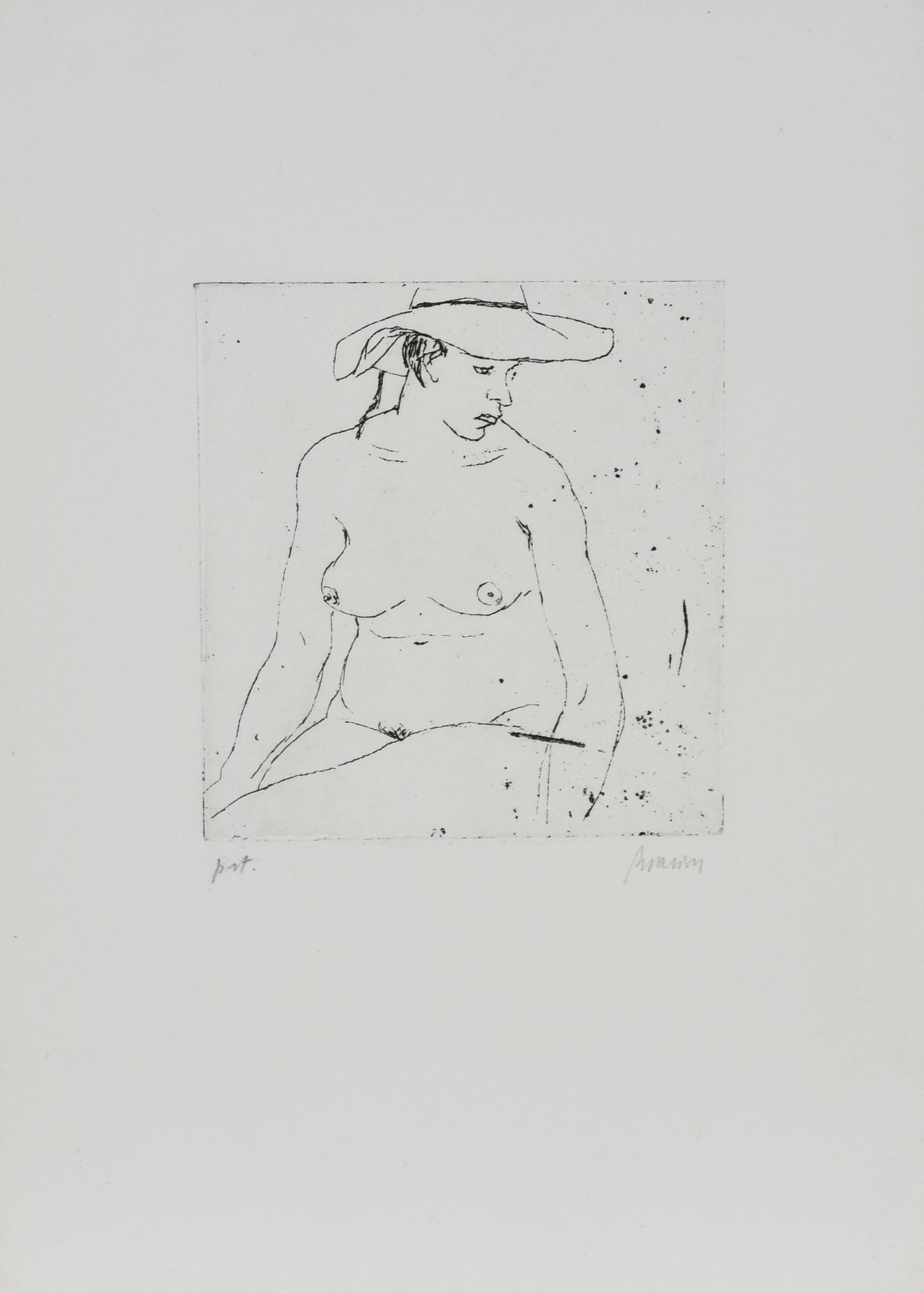 Renzo Biasion NUDO CON CAPPELLO incisione su carta, cm 35x25 (lastra cm...