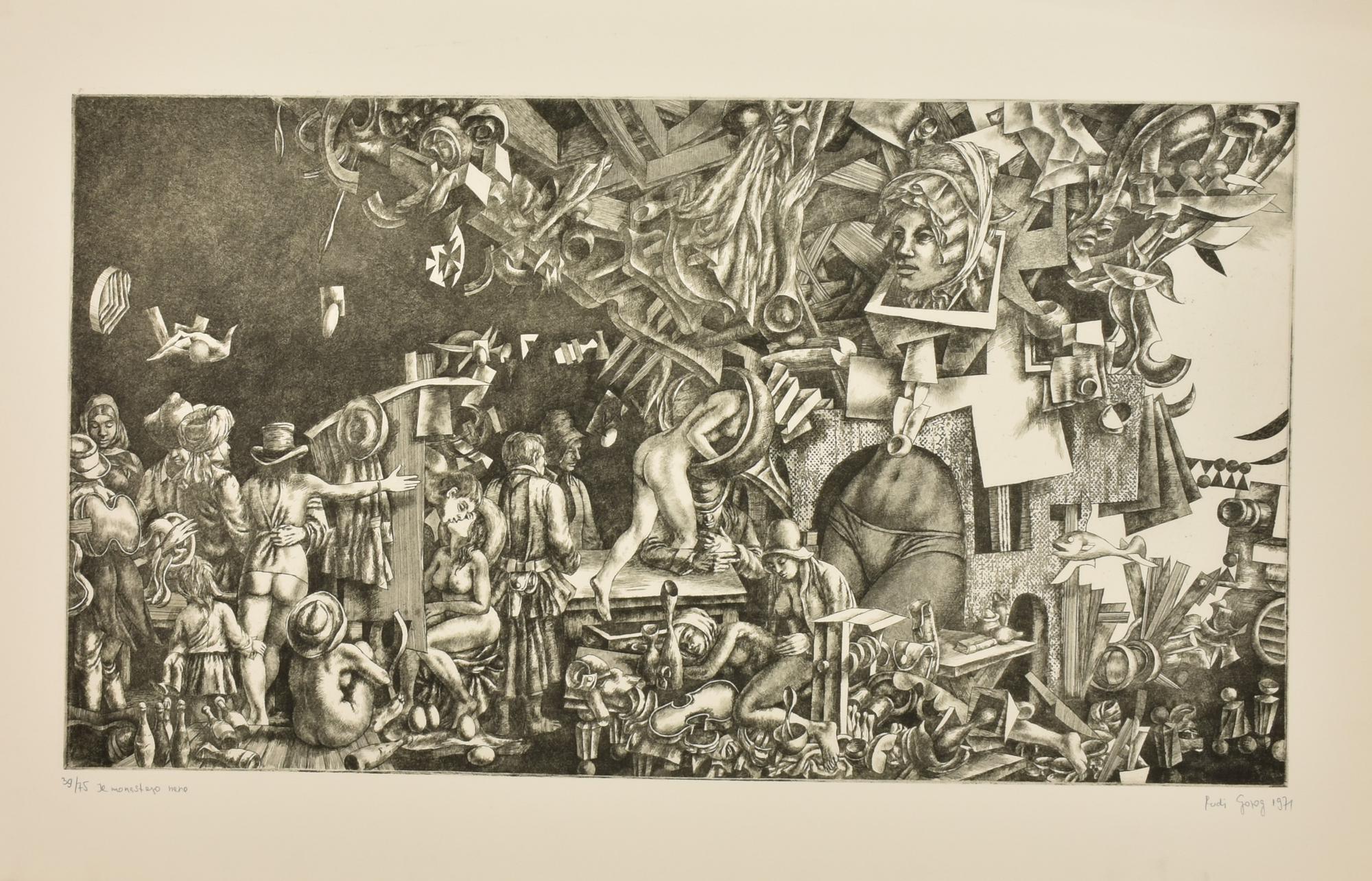 Rudi Gorog IL MONASTERO NERO incisione su carta, battuta cm 44x79,5, su...
