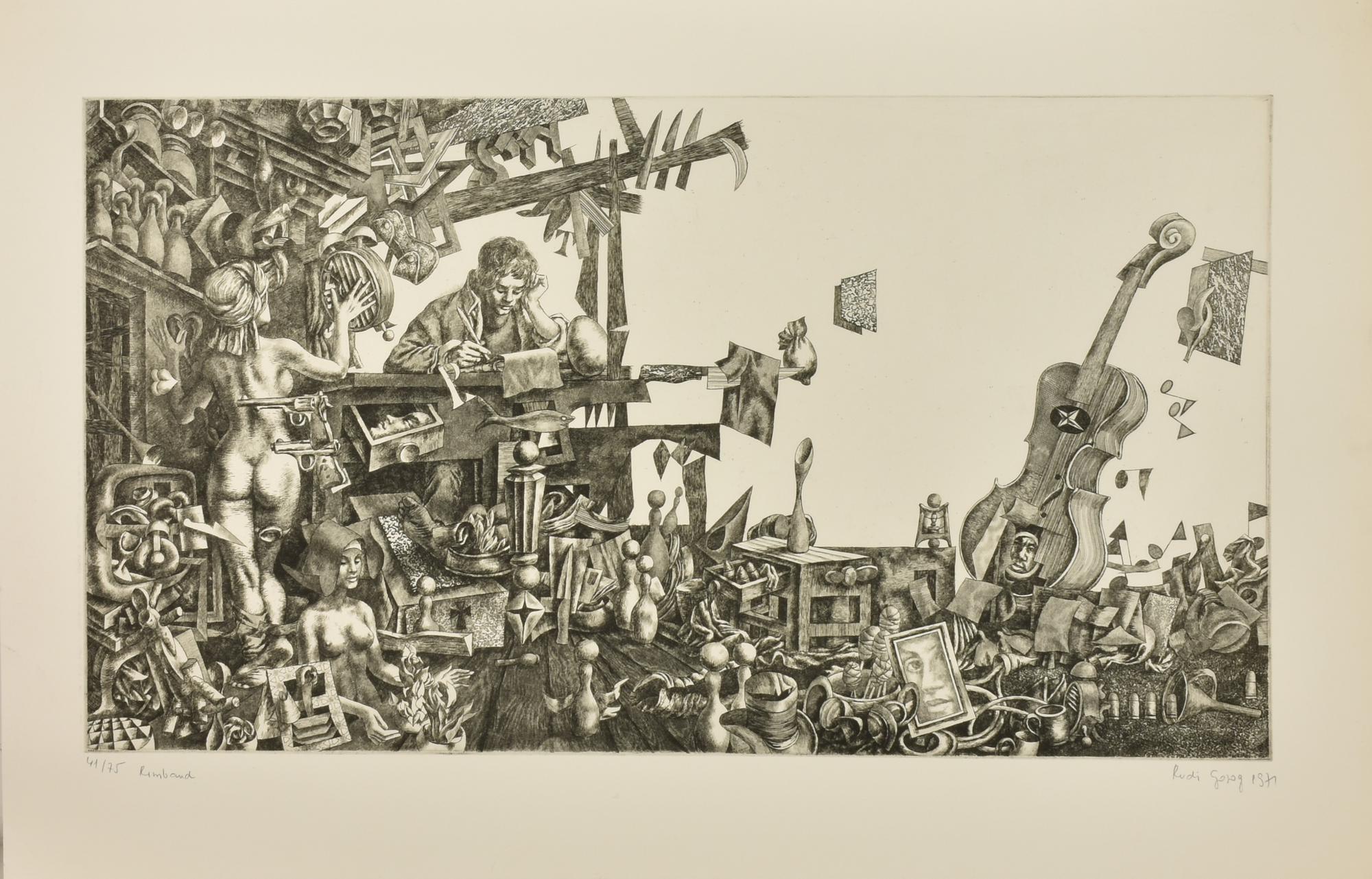 Rudi Gorog RIMBAUD incisione su carta, battuta cm 44x79,5, su foglio cm...