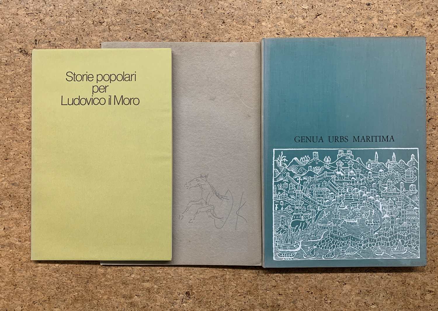 Cartella contenente doppio volume riccamente illustrato edito in occasione delle manifestazioni organizzate dalla direzione della Biblioteca Trivulziana per 'Leonardo a Milano 1482-1982'