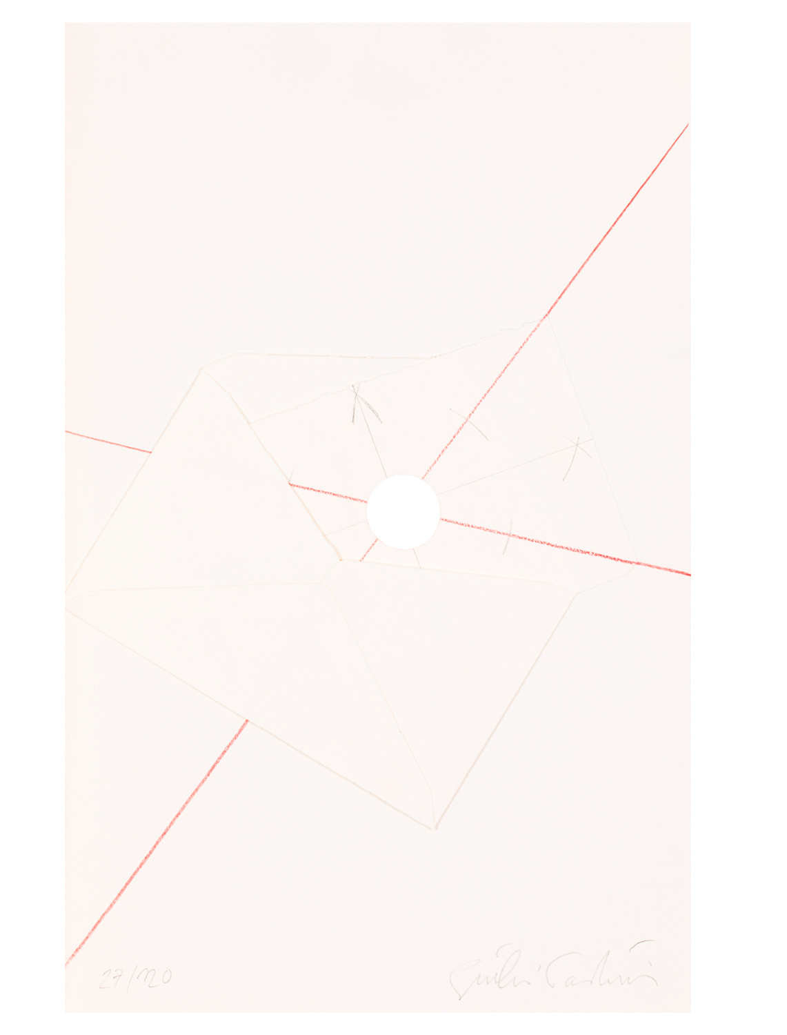 Firma e numerazione (Esemplare 27/120) a matita al fronte del multiplo