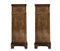 Coppia di comodini in legno di radica di noce, troncopiramidali, XIX century H cm 90, base cm 34x34. Piano superiore cm 30x30 Marmo di diaspri siciliani al piano. Cassetto superiore e sportello rettangolare sottostante