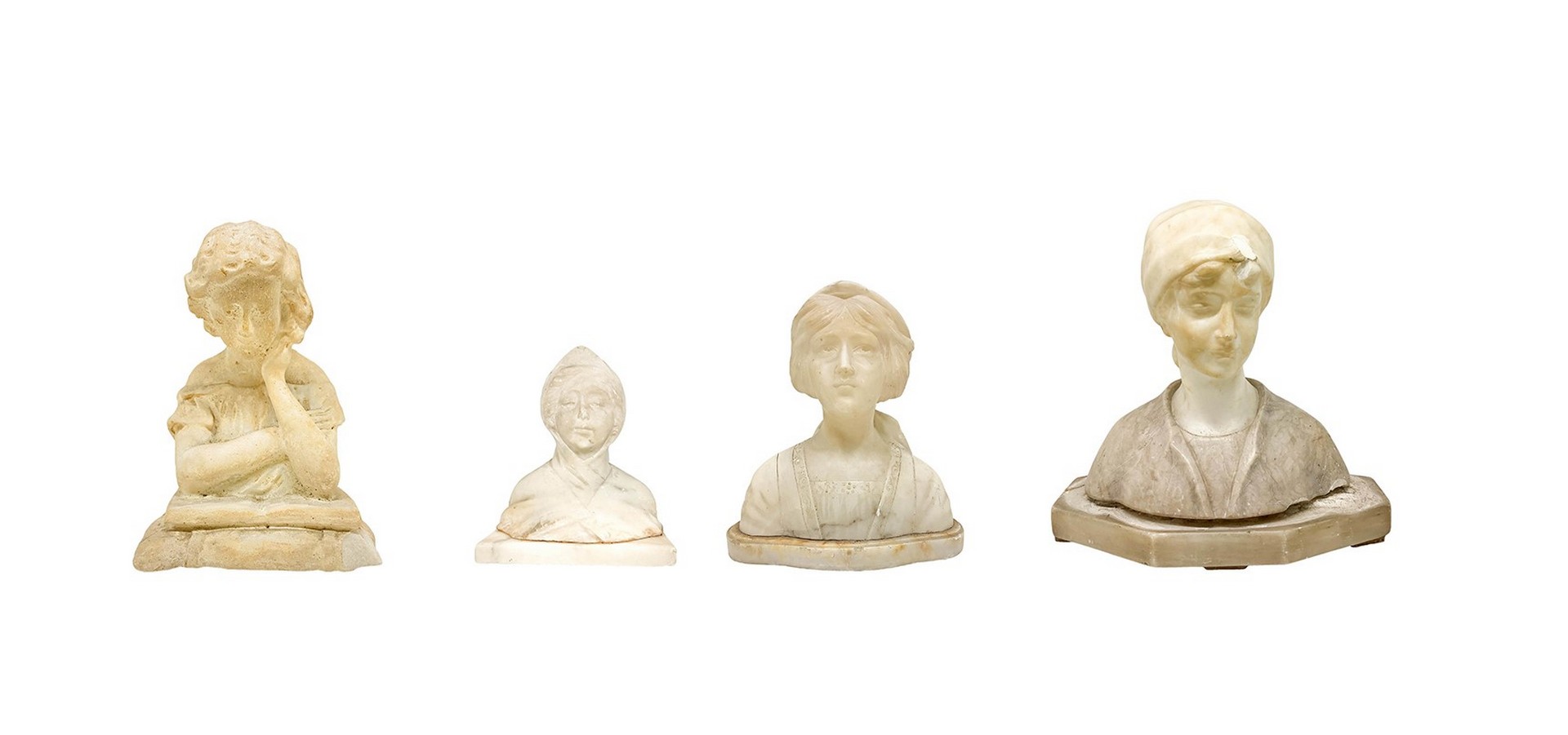 Gruppo di n. 4 mezzi busti in marmo bianco, XIX / XX century