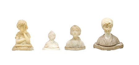 Gruppo di n. 4 mezzi busti in marmo bianco, XIX / XX century Varie dimensioni. Da sinistra: 17,5 cm, 14 cm, 18 cm, 24 cm