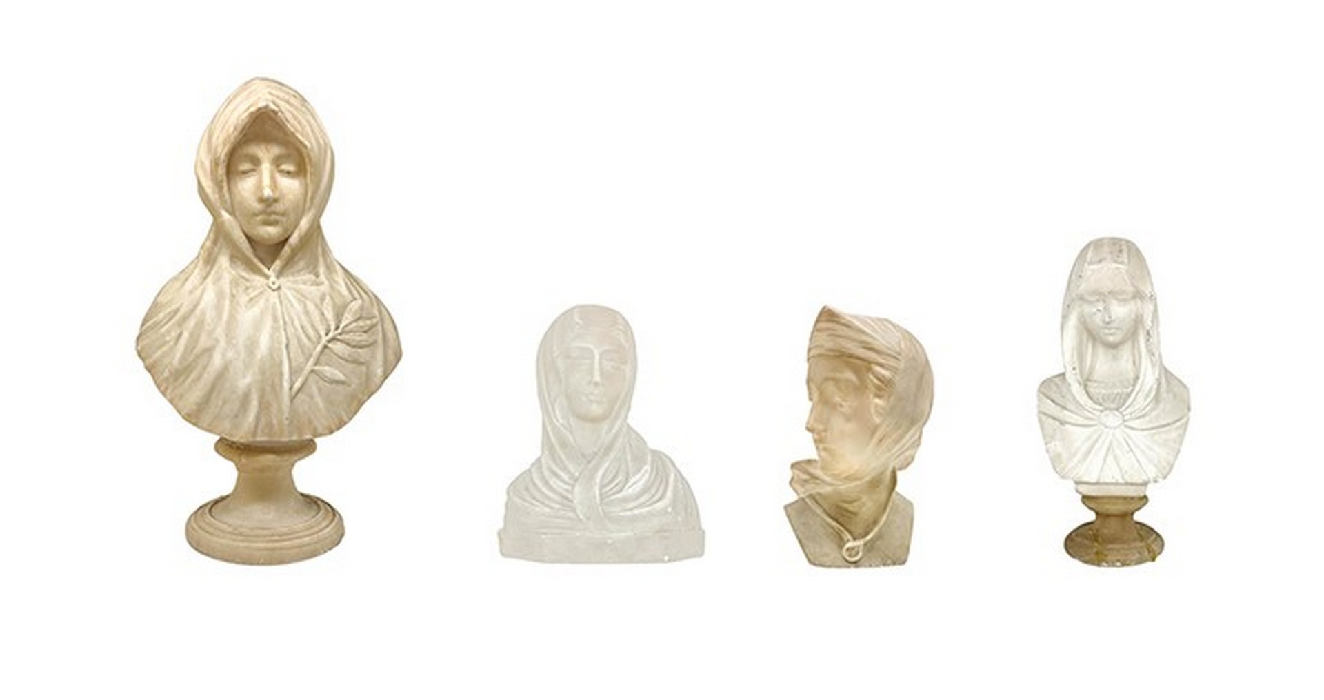 Gruppo di n. 4 mezzi busti in marmo bianco, XIX / XX century