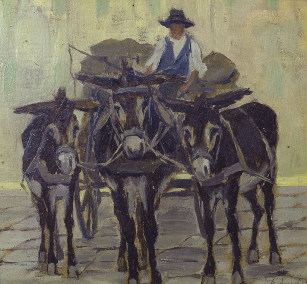 Giovanni Lomi (Livorno, 1889 - 1969) CARBONAIO Olio su cartone, cm.21,5x22,7...