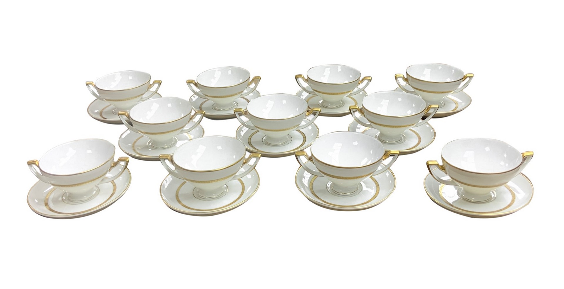 Servizio consommé H & C ‘Selb Bavaria’ Heinrich Porcellana In porcellana con bordo interno in oro. Composto da 11 tazzine, 11 piattini