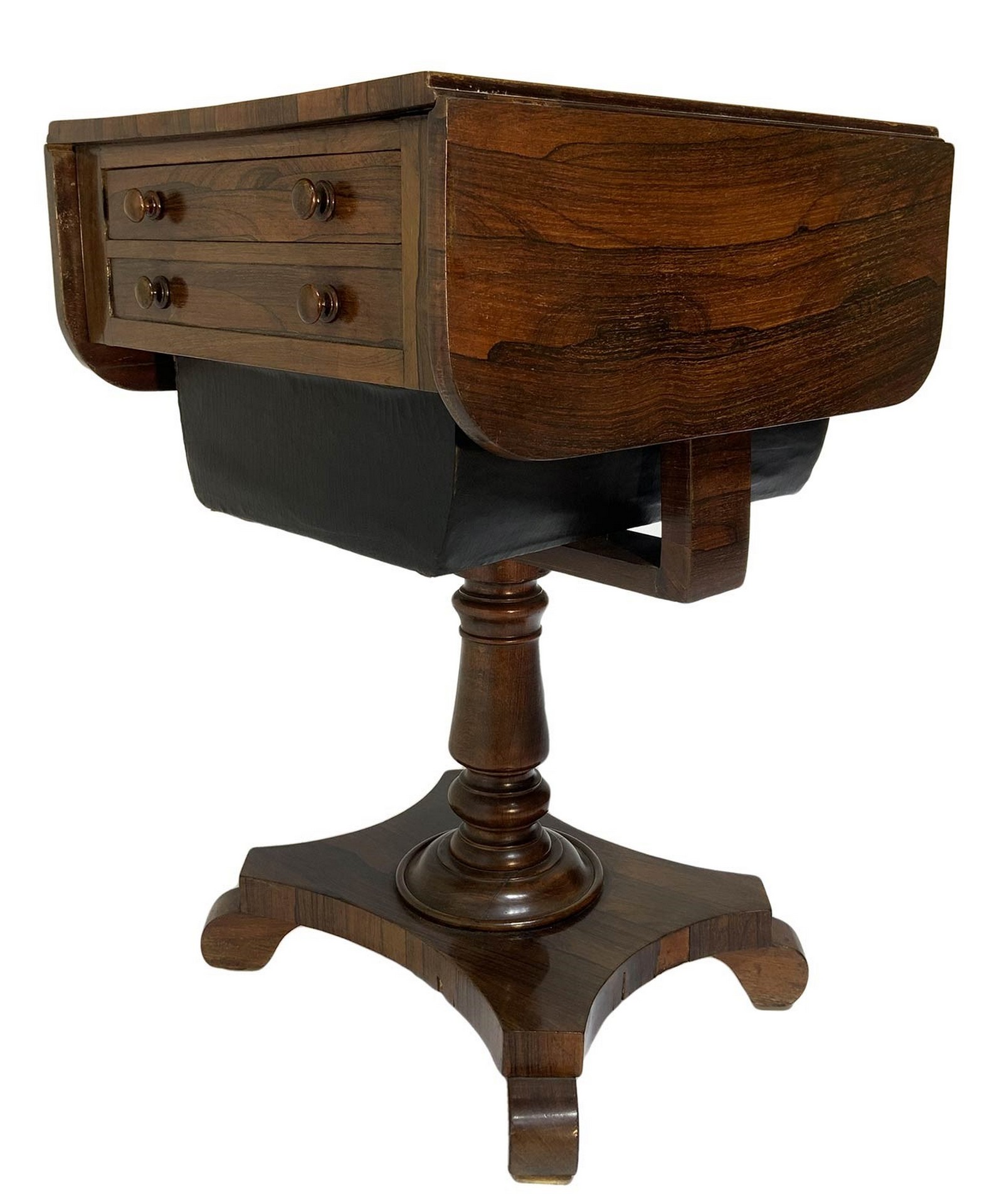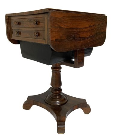 Tavolino a bandelli in legno di palissandro H cm 74xcm 47x52. Con bandelli aperti cm 85x52. Piede a quattro razze, cassetti sul fronte.